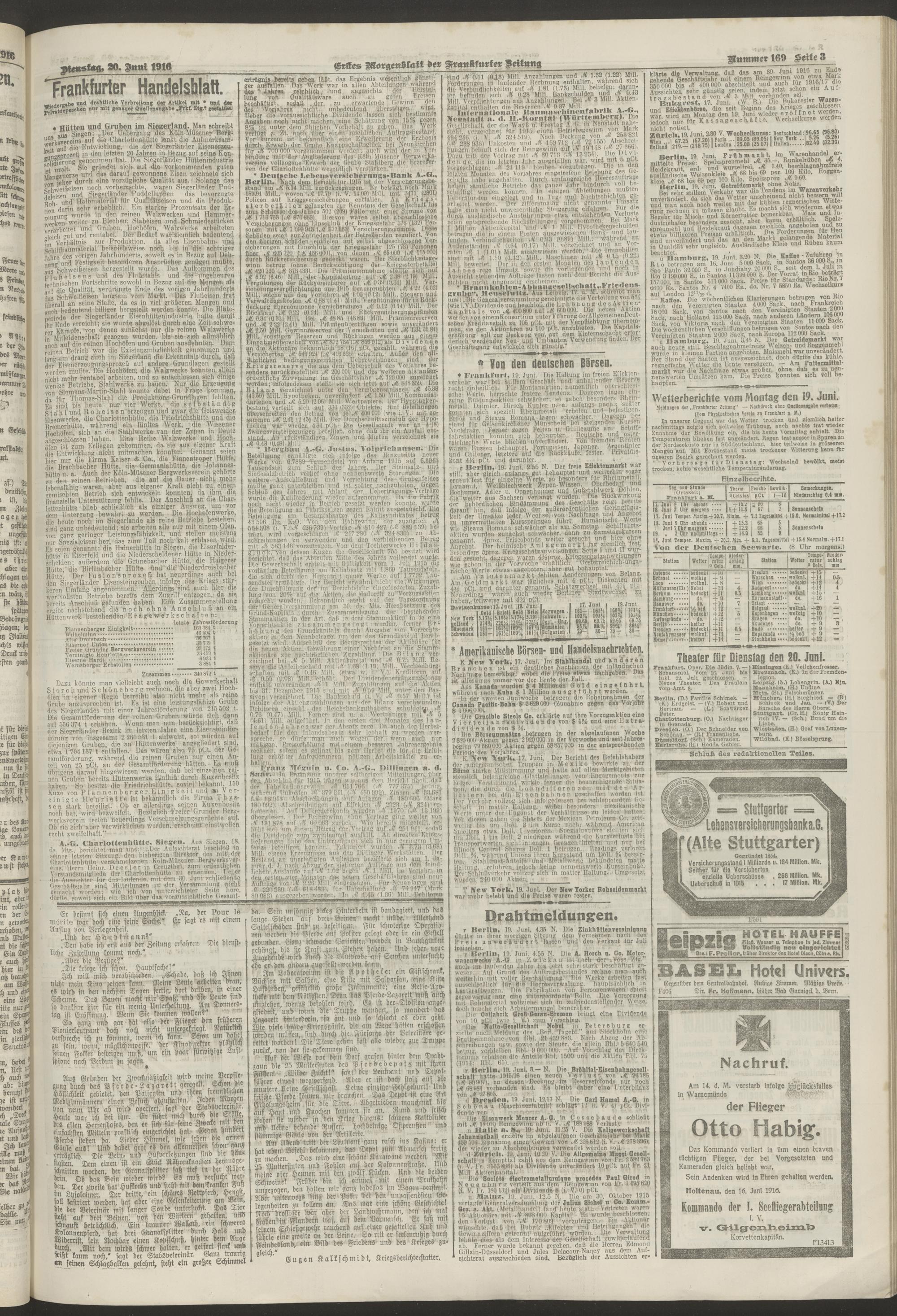 20.06.1916 = Nr. 169. Erstes Morgenblatt