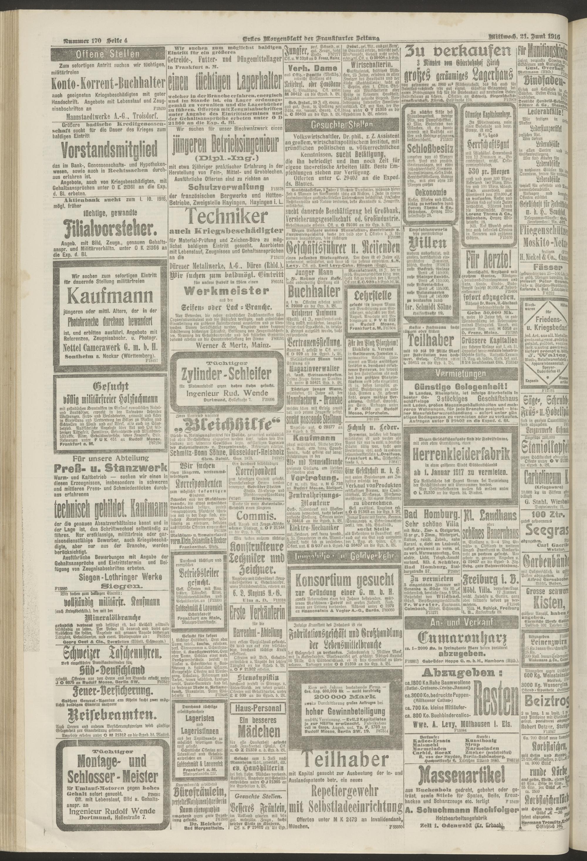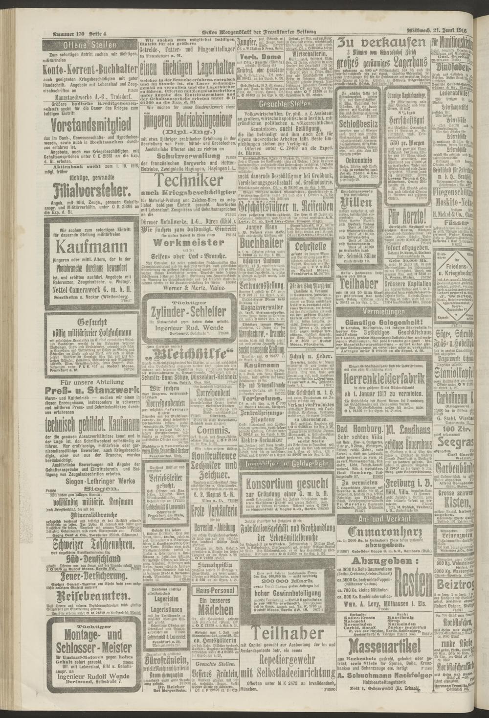 21.06.1916 = Nr. 170. Erstes Morgenblatt