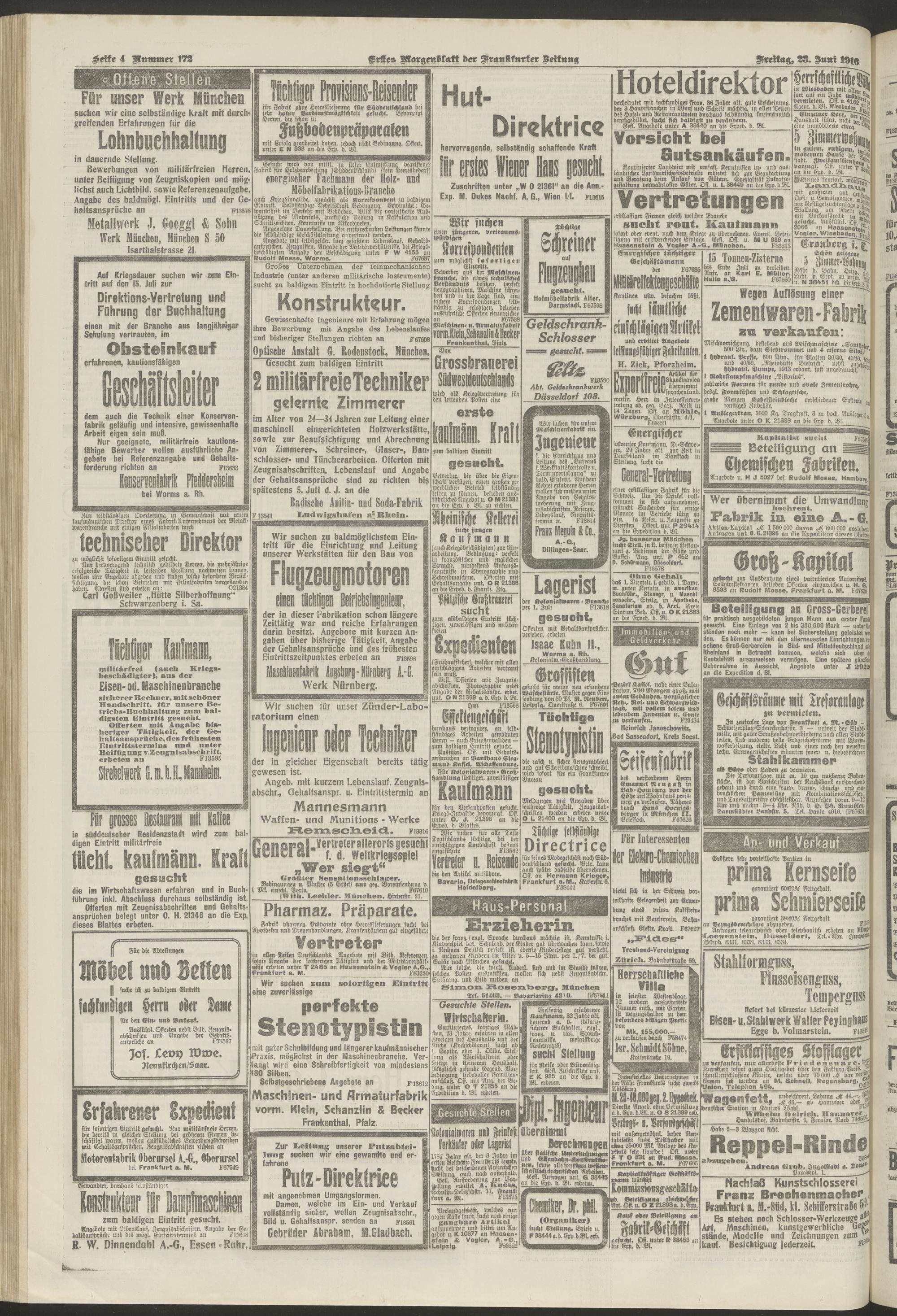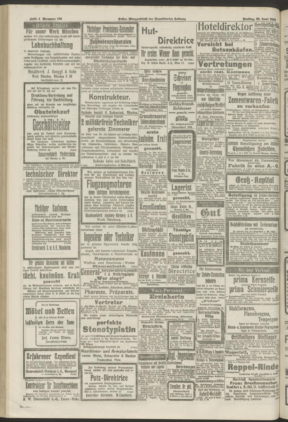 23.06.1916 = Nr. 172. Erstes Morgenblatt
