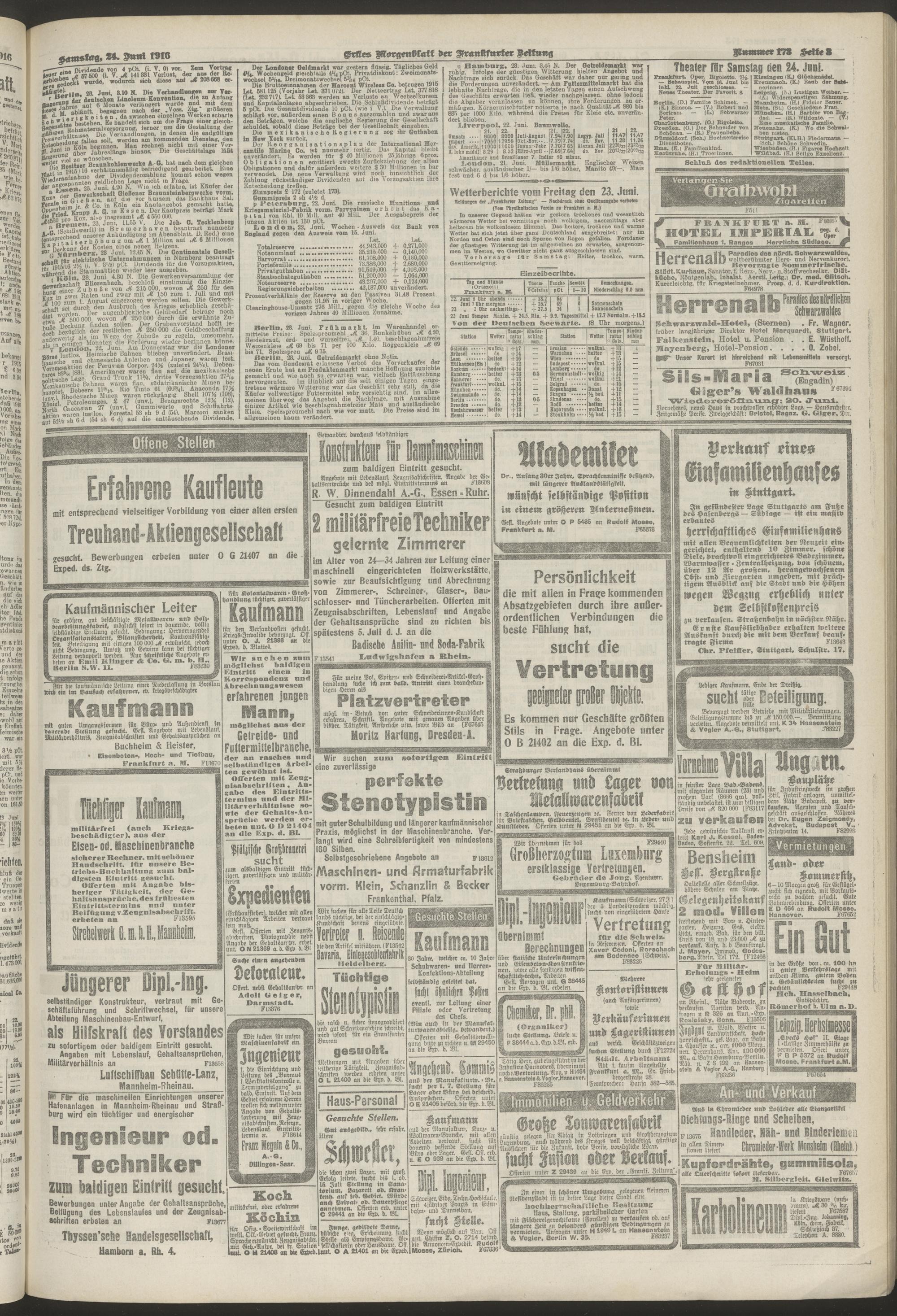 24.06.1916 = Nr. 173. Erstes Morgenblatt