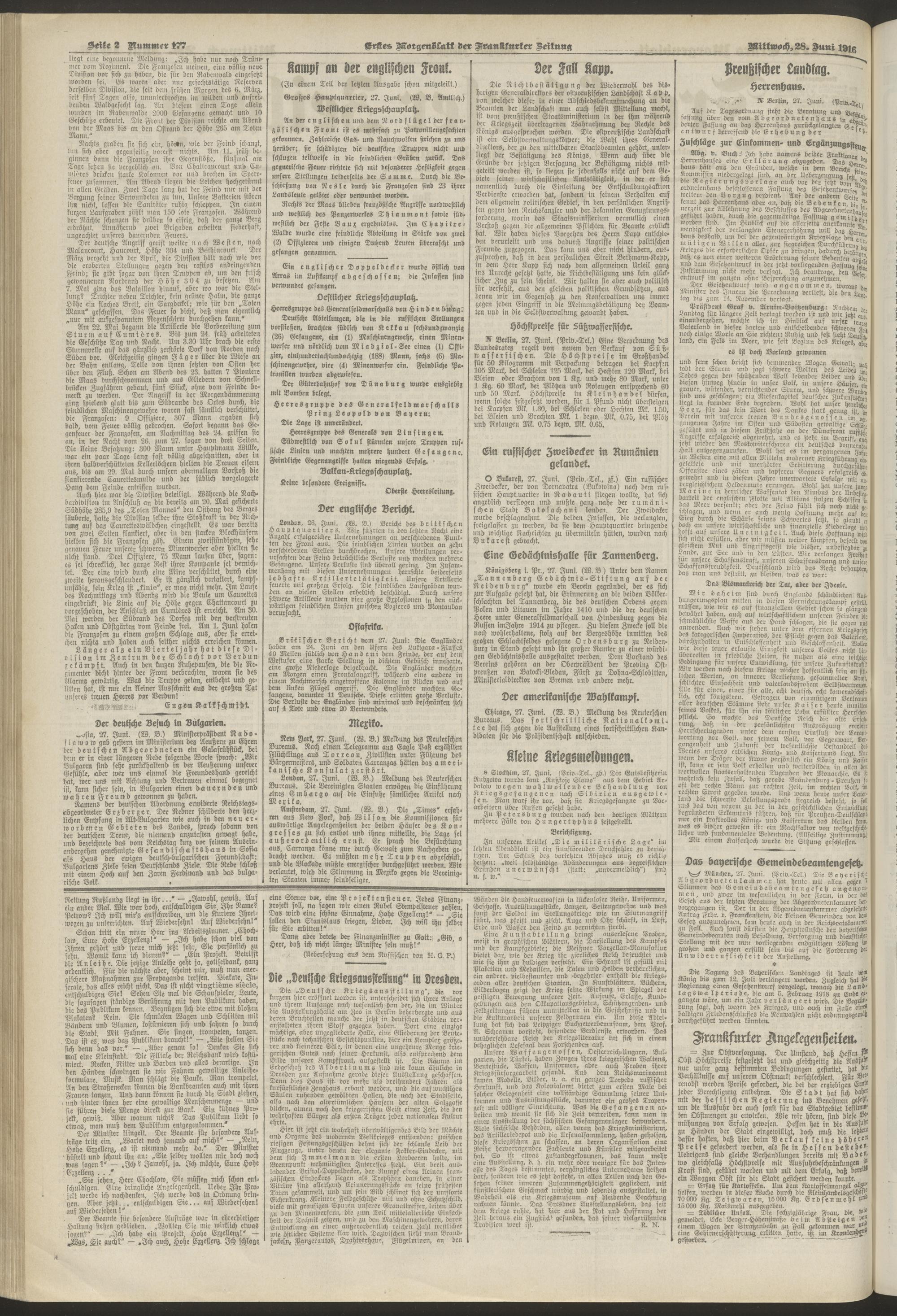 28.06.1916 = Nr. 177. Erstes Morgenblatt