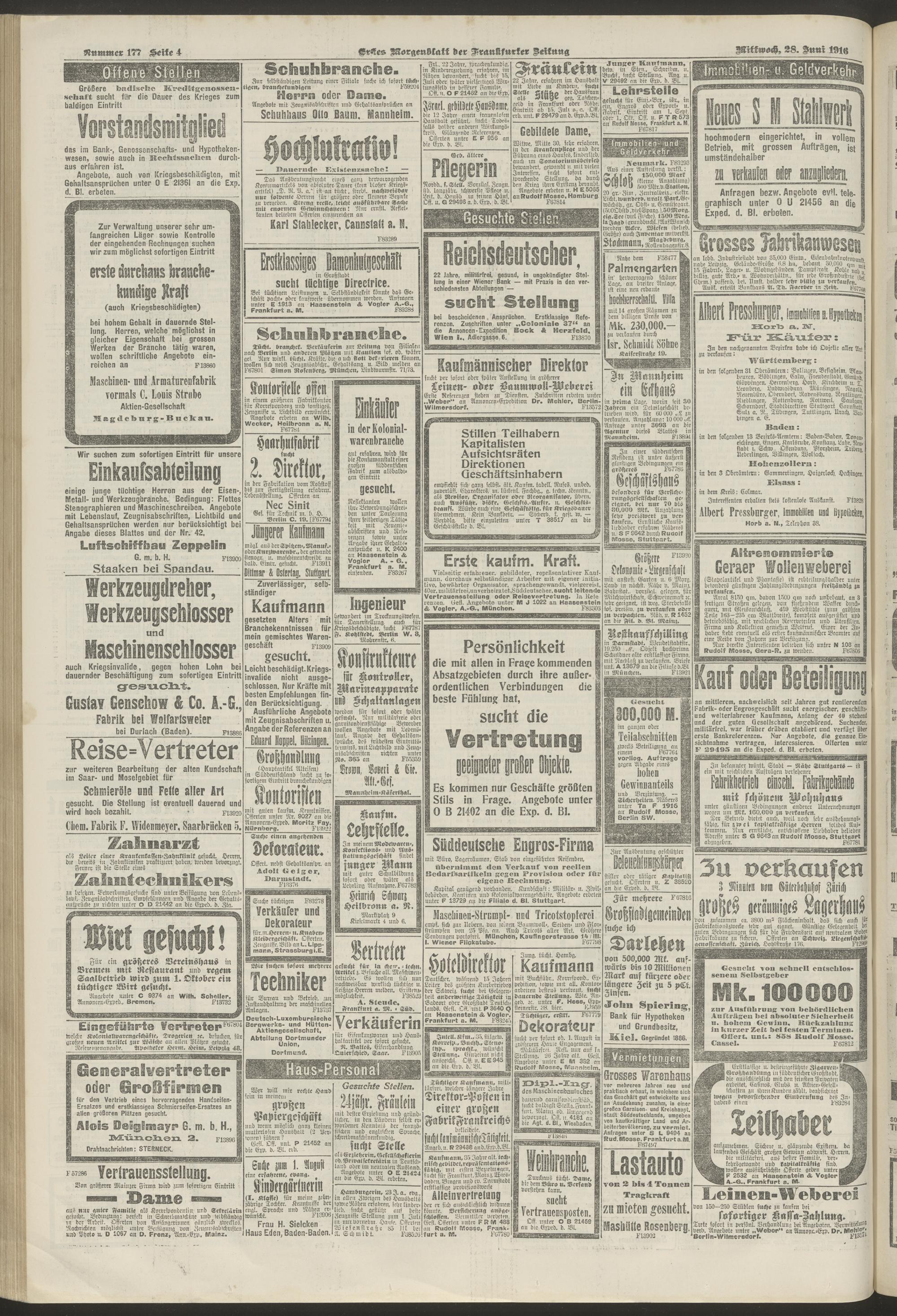 28.06.1916 = Nr. 177. Erstes Morgenblatt