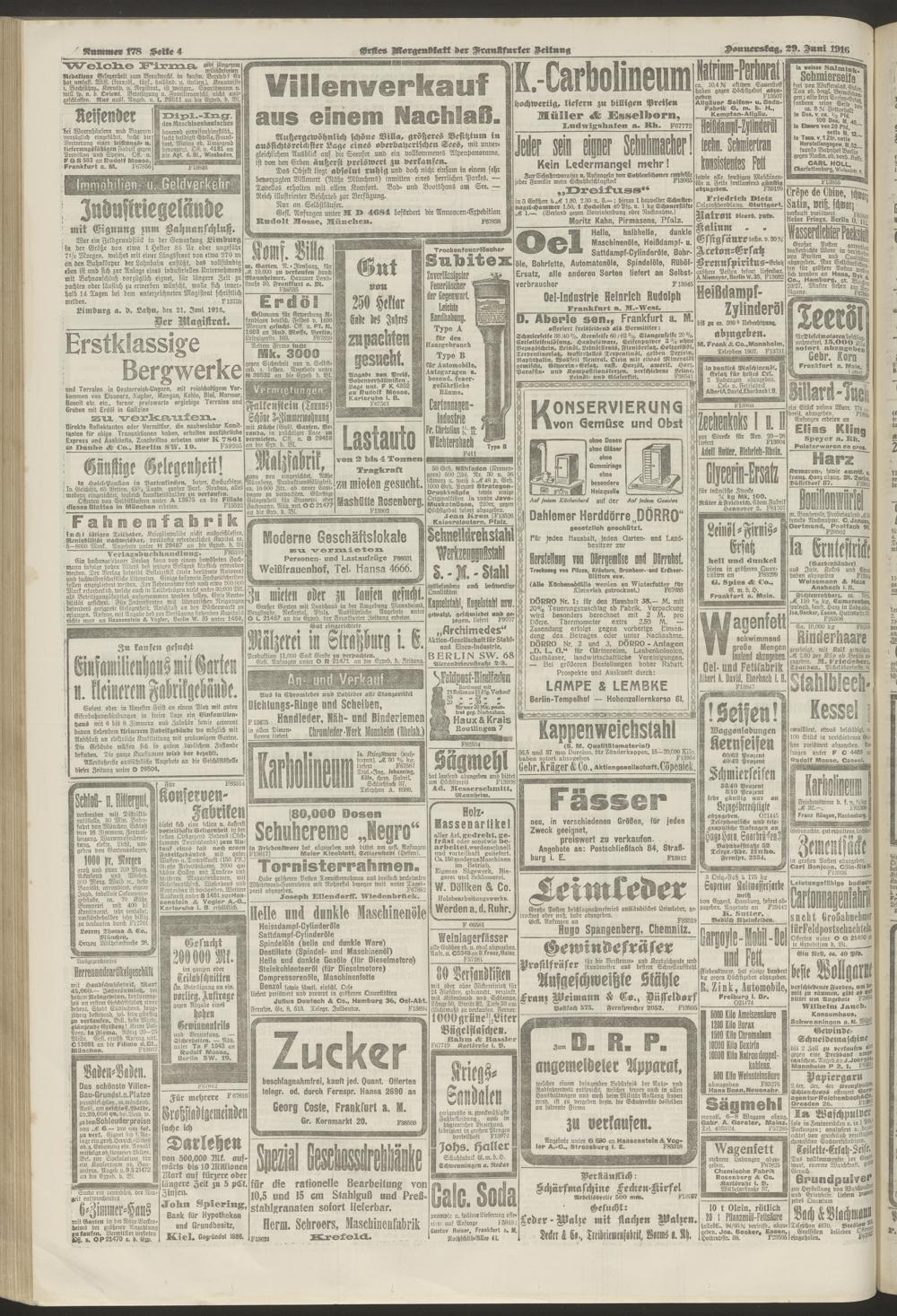 29.06.1916 = Nr. 178. Erstes Morgenblatt