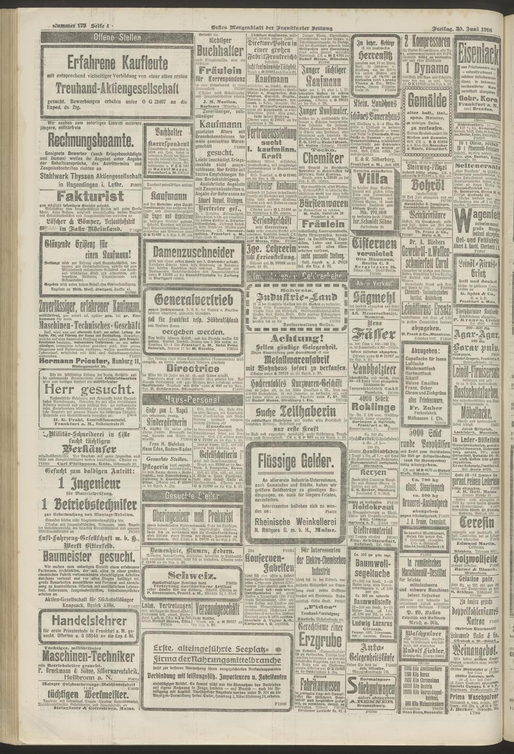 30.06.1916 = Nr. 179. Erstes Morgenblatt