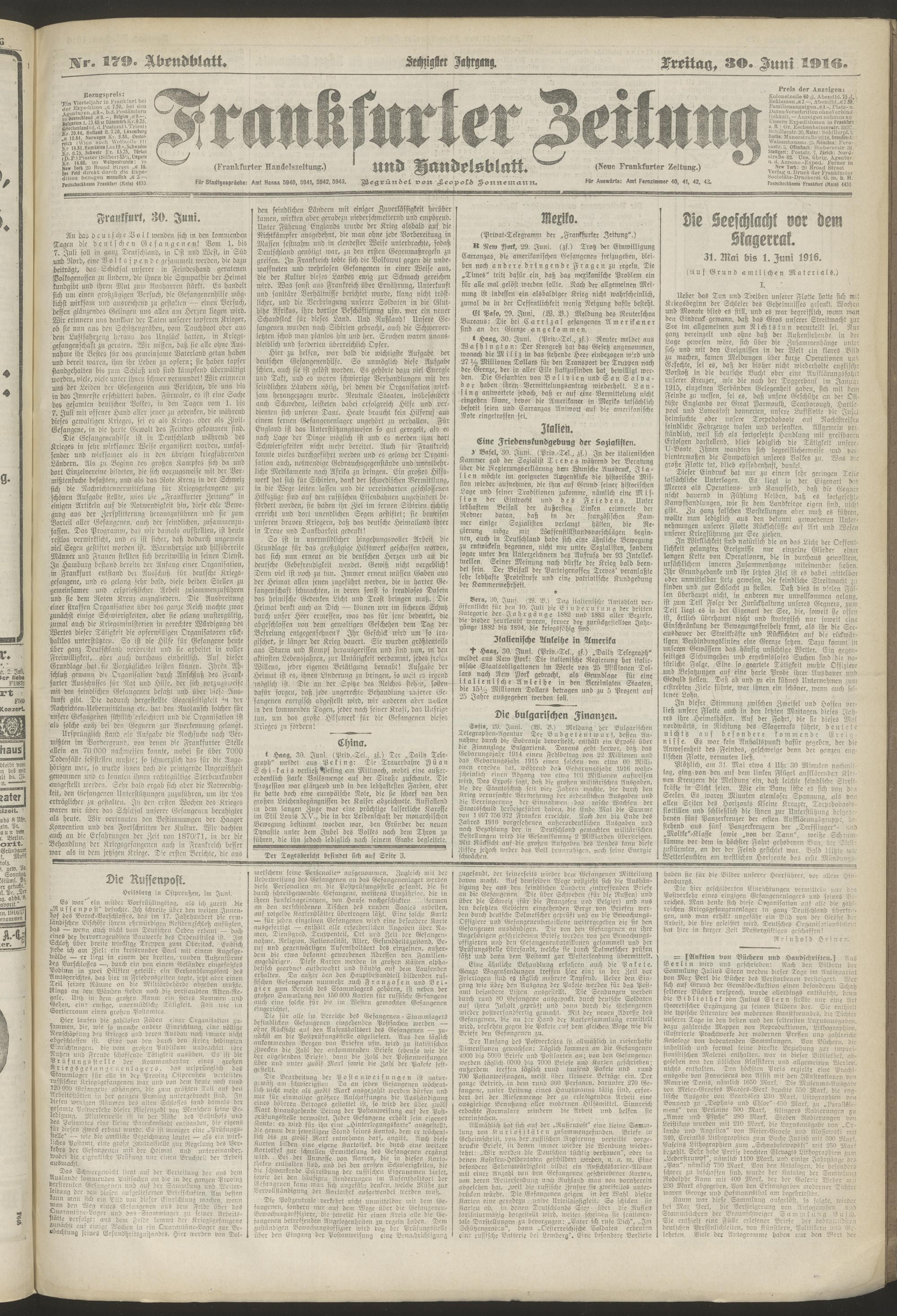30.06.1916 = Nr. 179. Abendblatt
