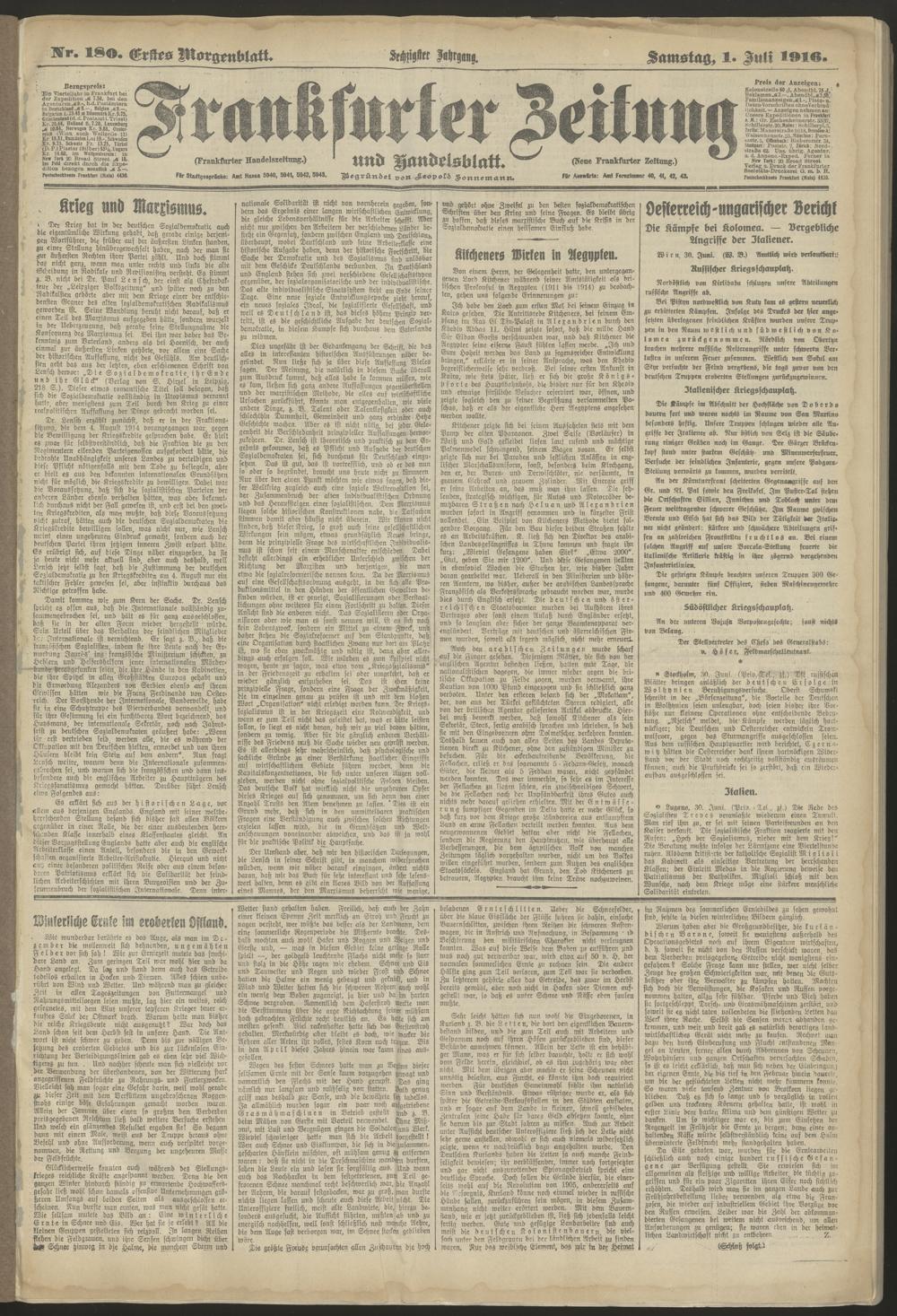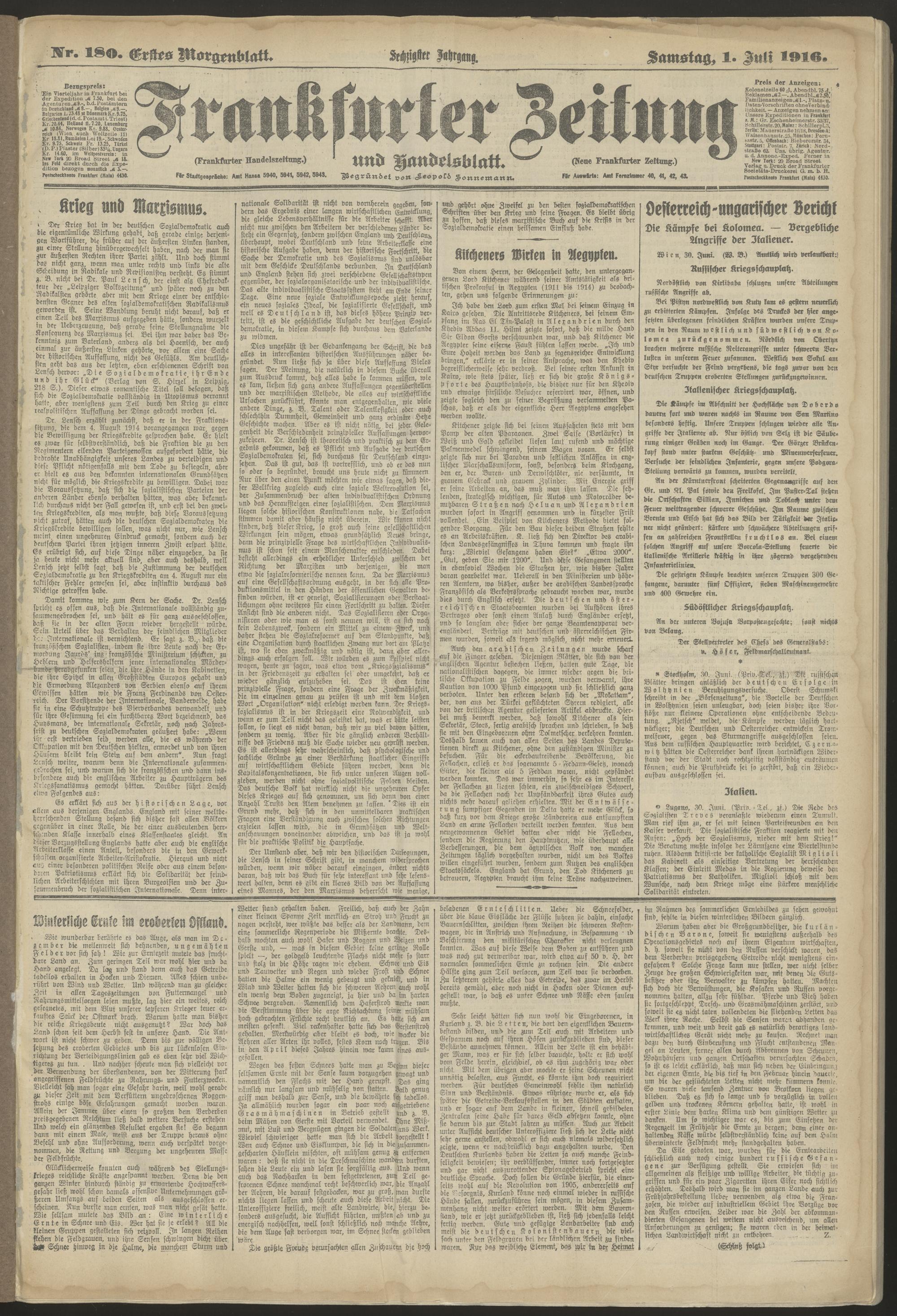 01.07.1916 = Nr. 180. Erstes Morgenblatt