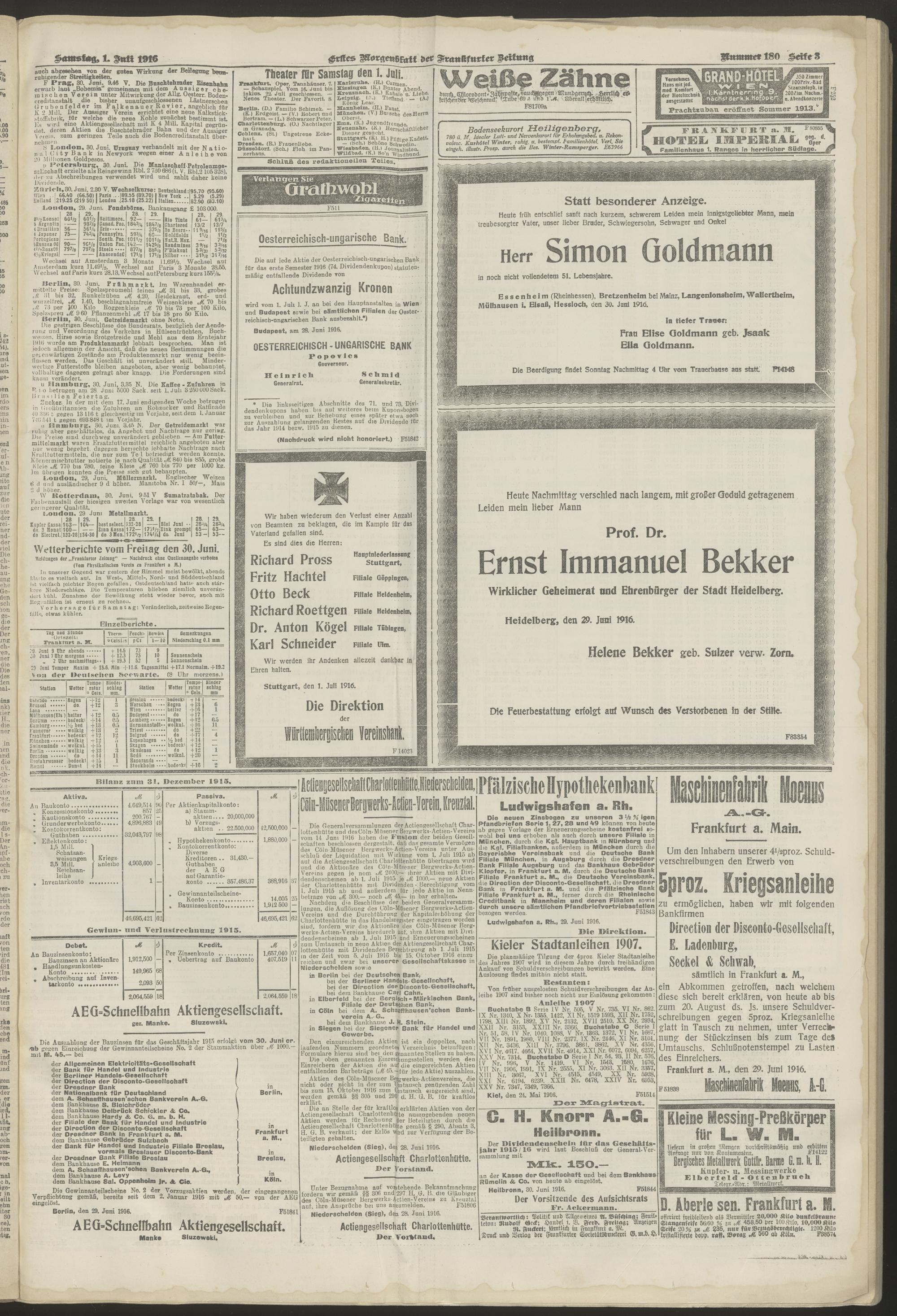 01.07.1916 = Nr. 180. Erstes Morgenblatt