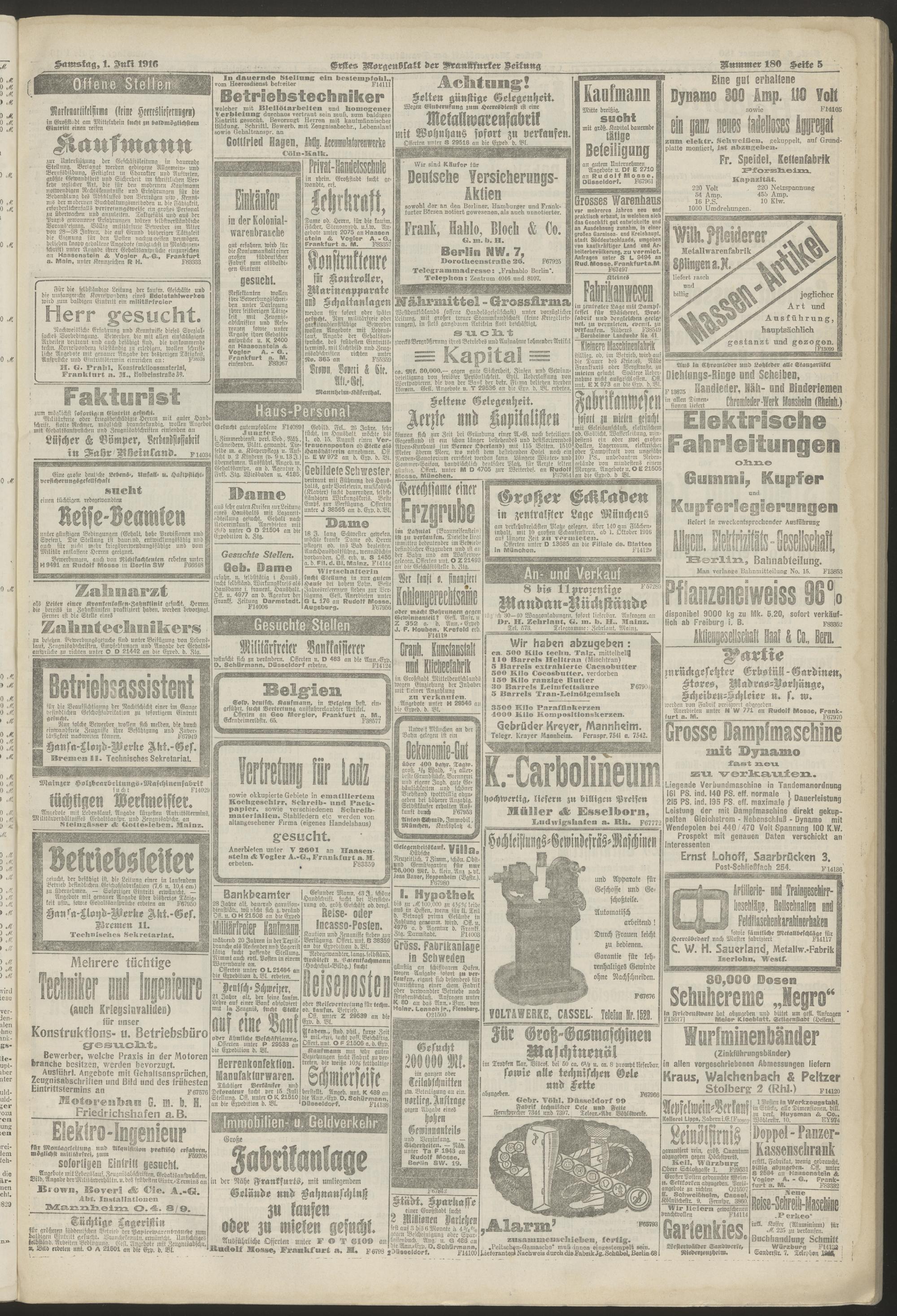 01.07.1916 = Nr. 180. Erstes Morgenblatt