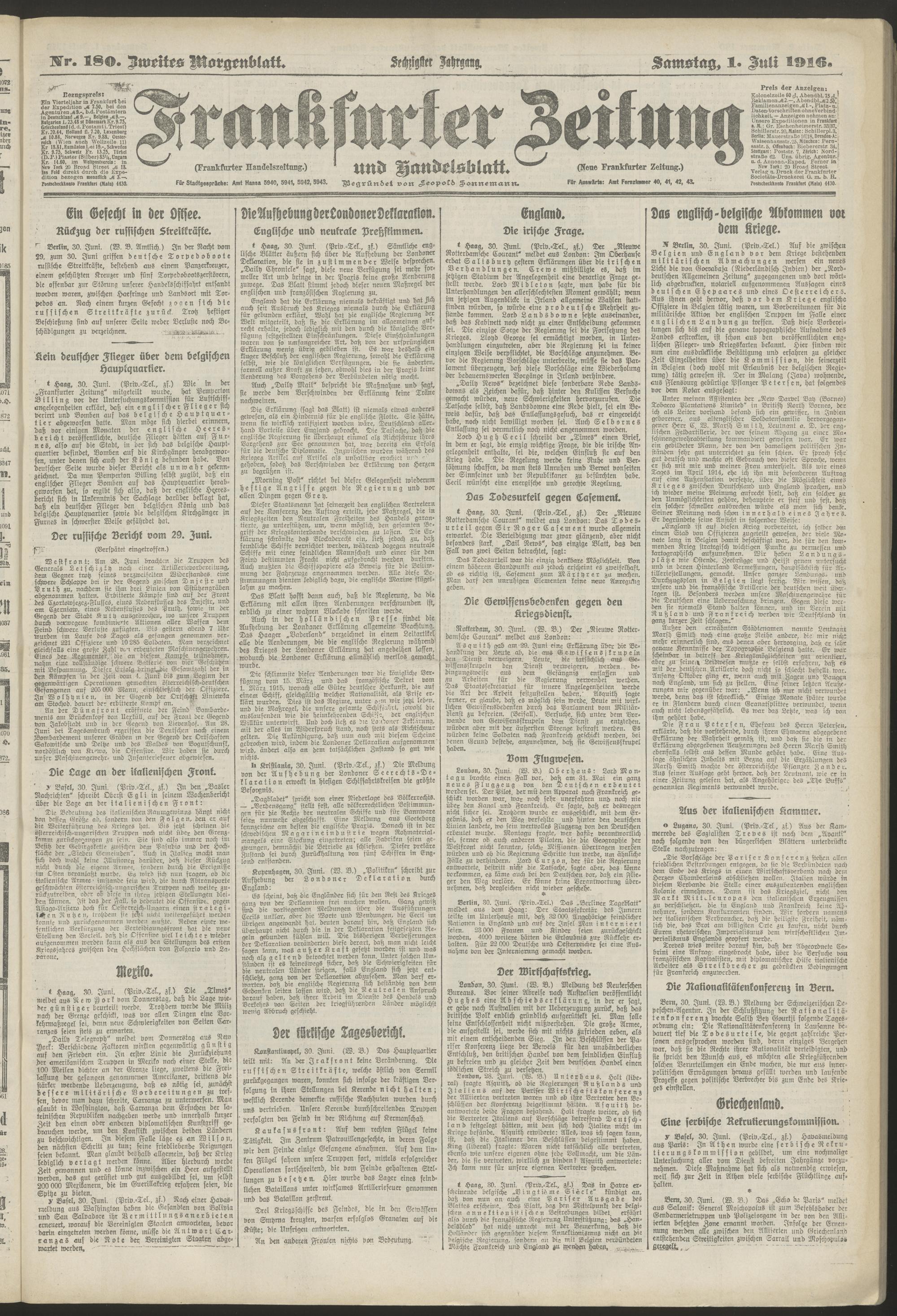 01.07.1916 = Nr. 180. Zweites Morgenblatt