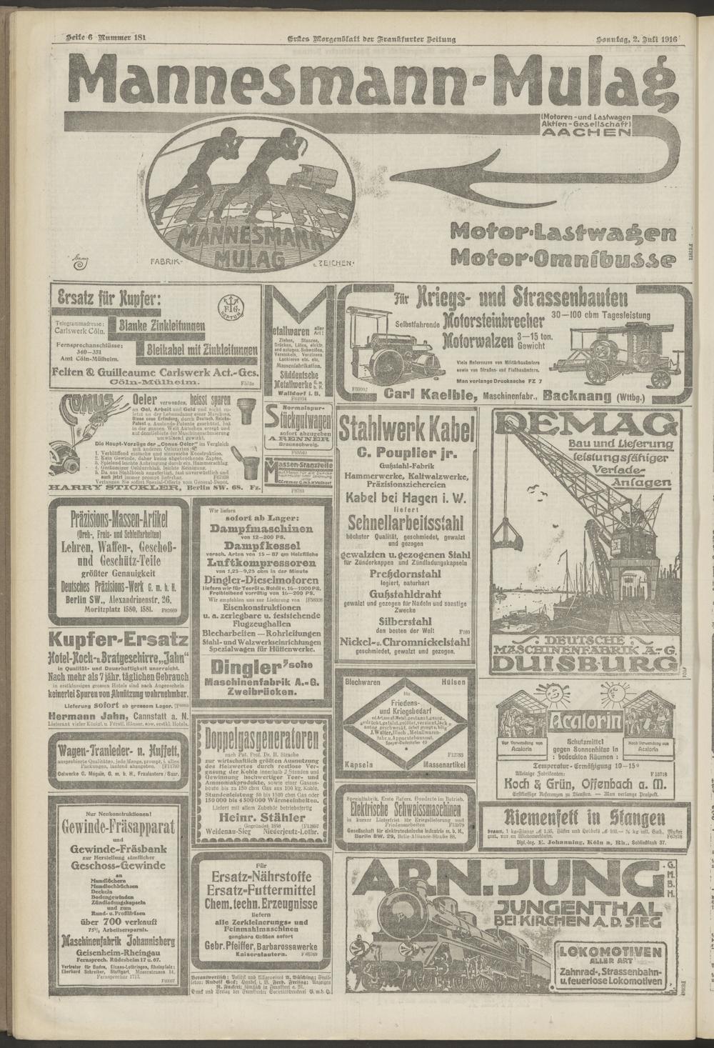 02.07.1916 = Nr. 181. Erstes Morgenblatt