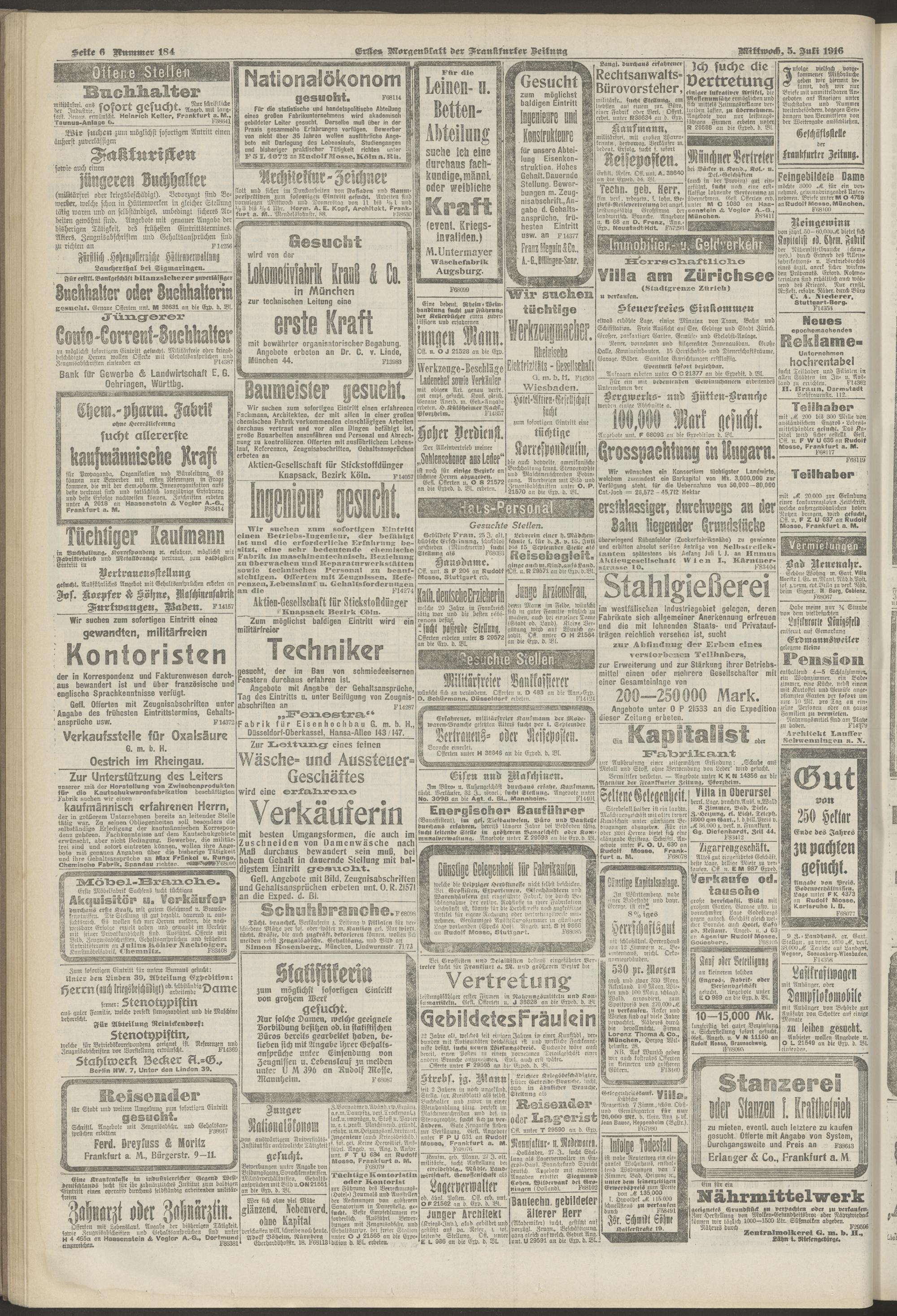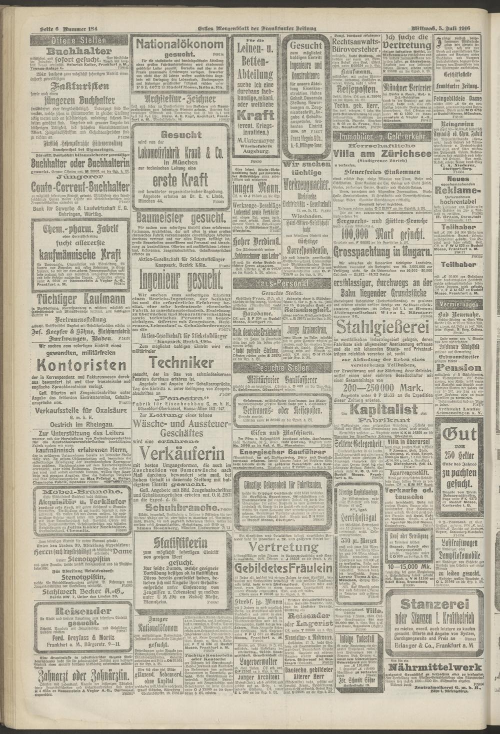 05.07.1916 = Nr. 184. Erstes Morgenblatt