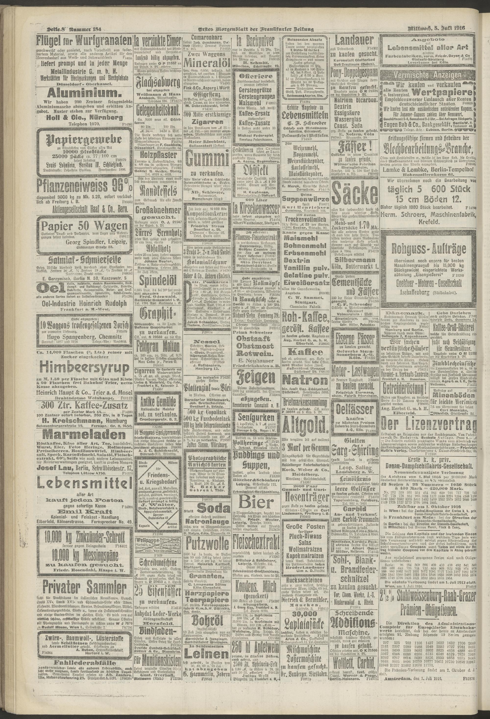 05.07.1916 = Nr. 184. Erstes Morgenblatt