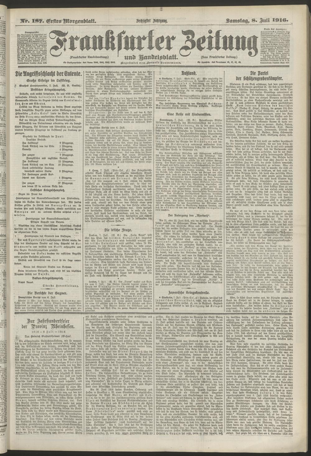 08.07.1916 = Nr. 187. Erstes Morgenblatt