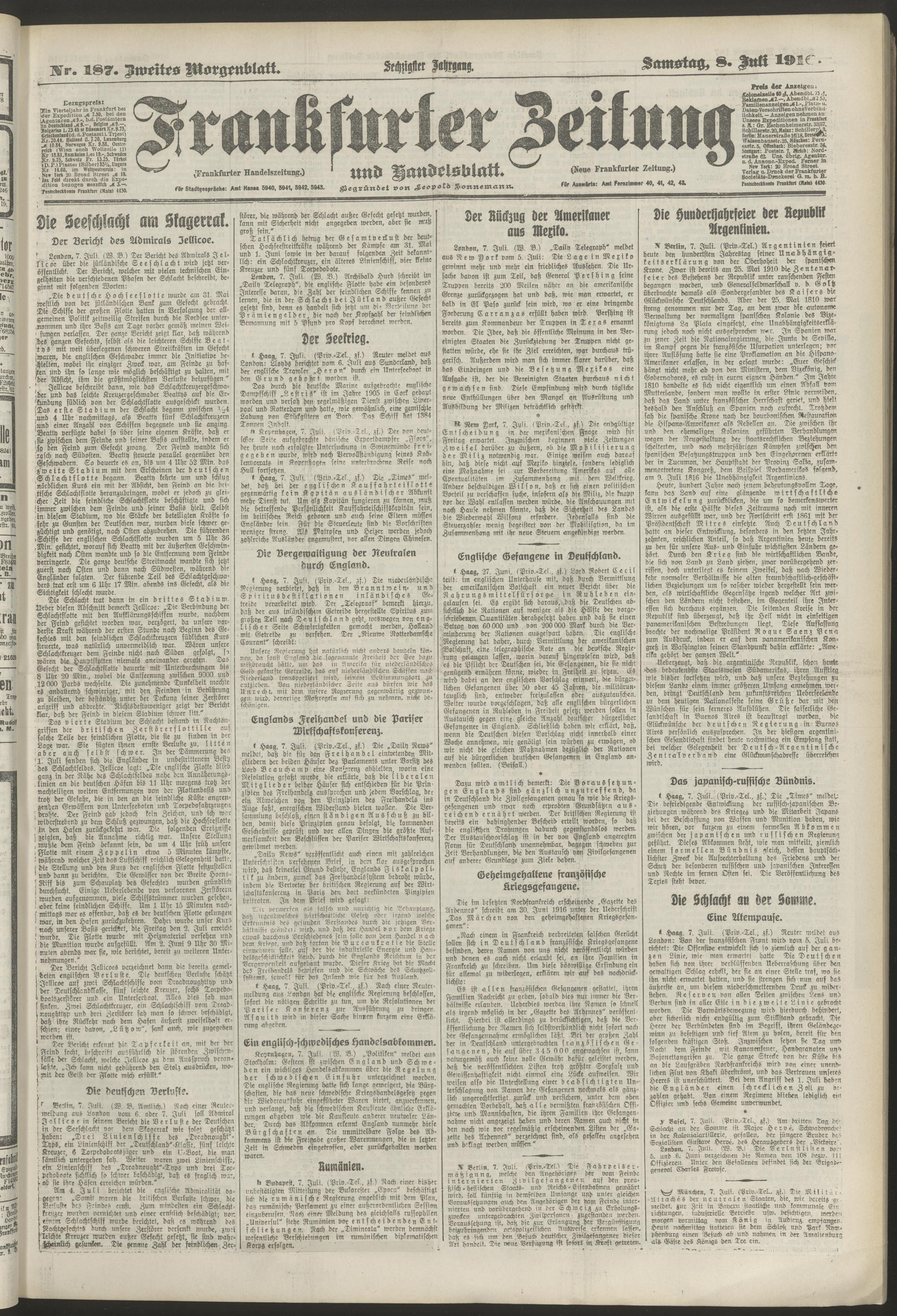 08.07.1916 = Nr. 187. Zweites Morgenblatt