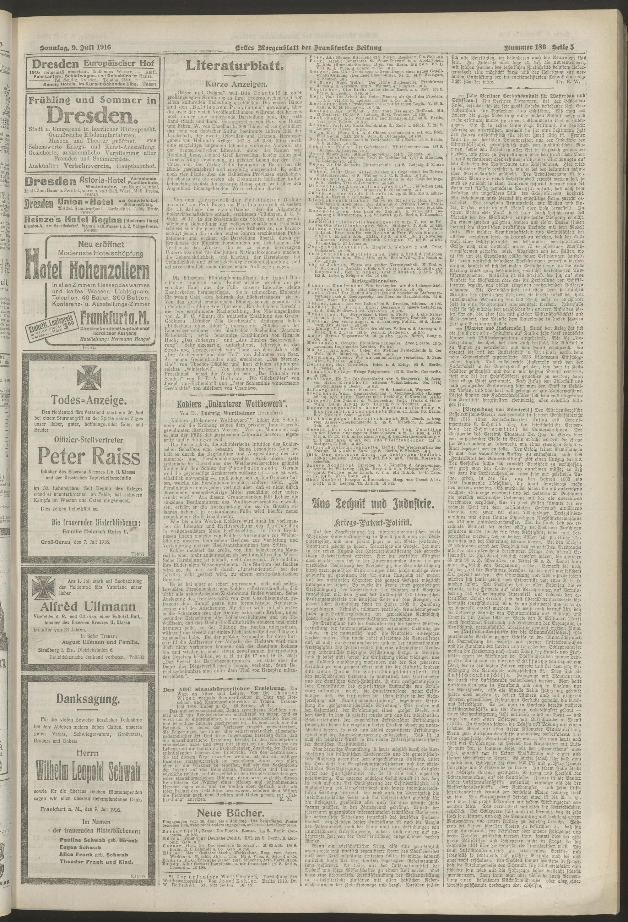 09.07.1916 = Nr. 188. Erstes Morgenblatt