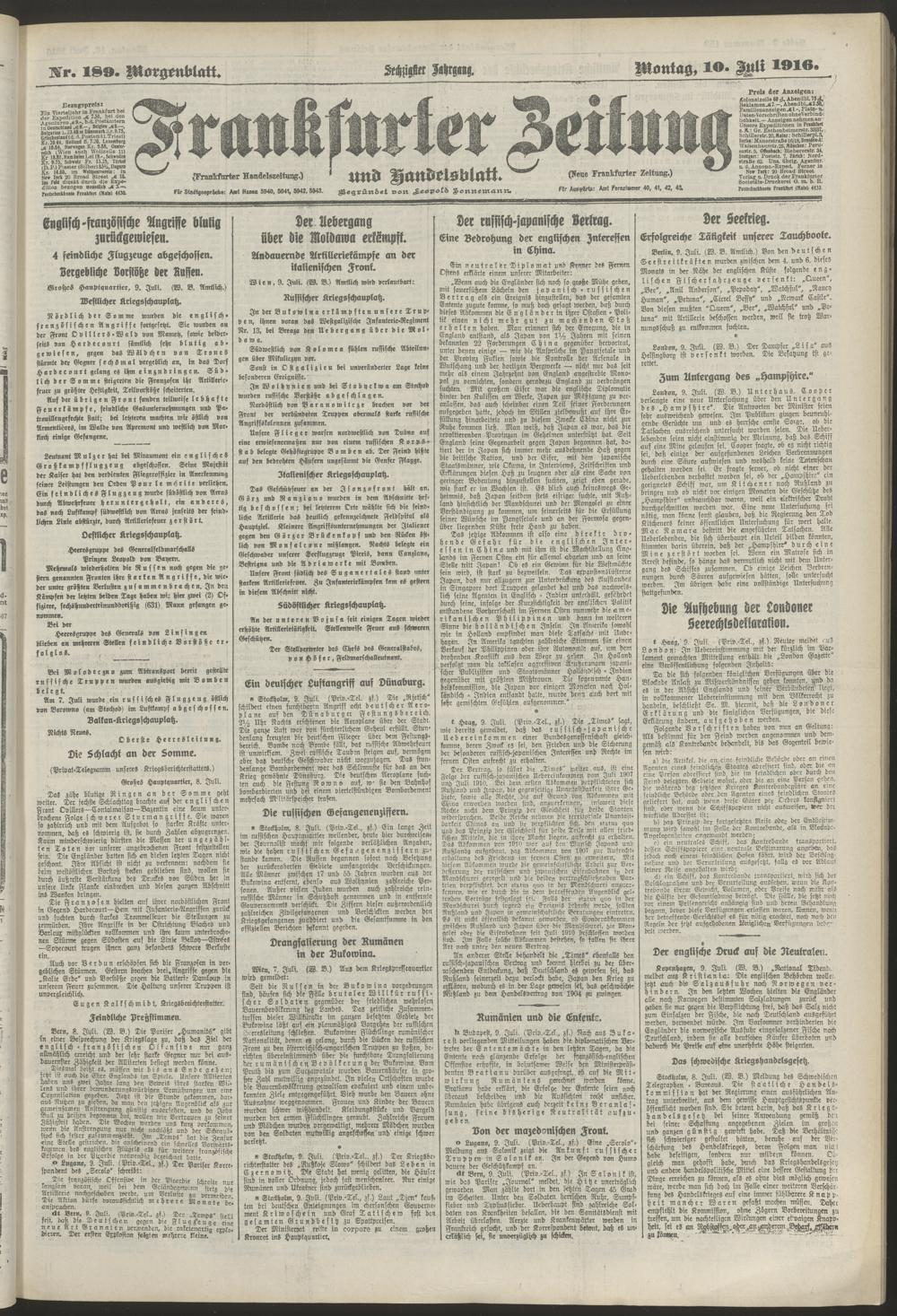 10.07.1916 = Nr. 189. Morgenblatt