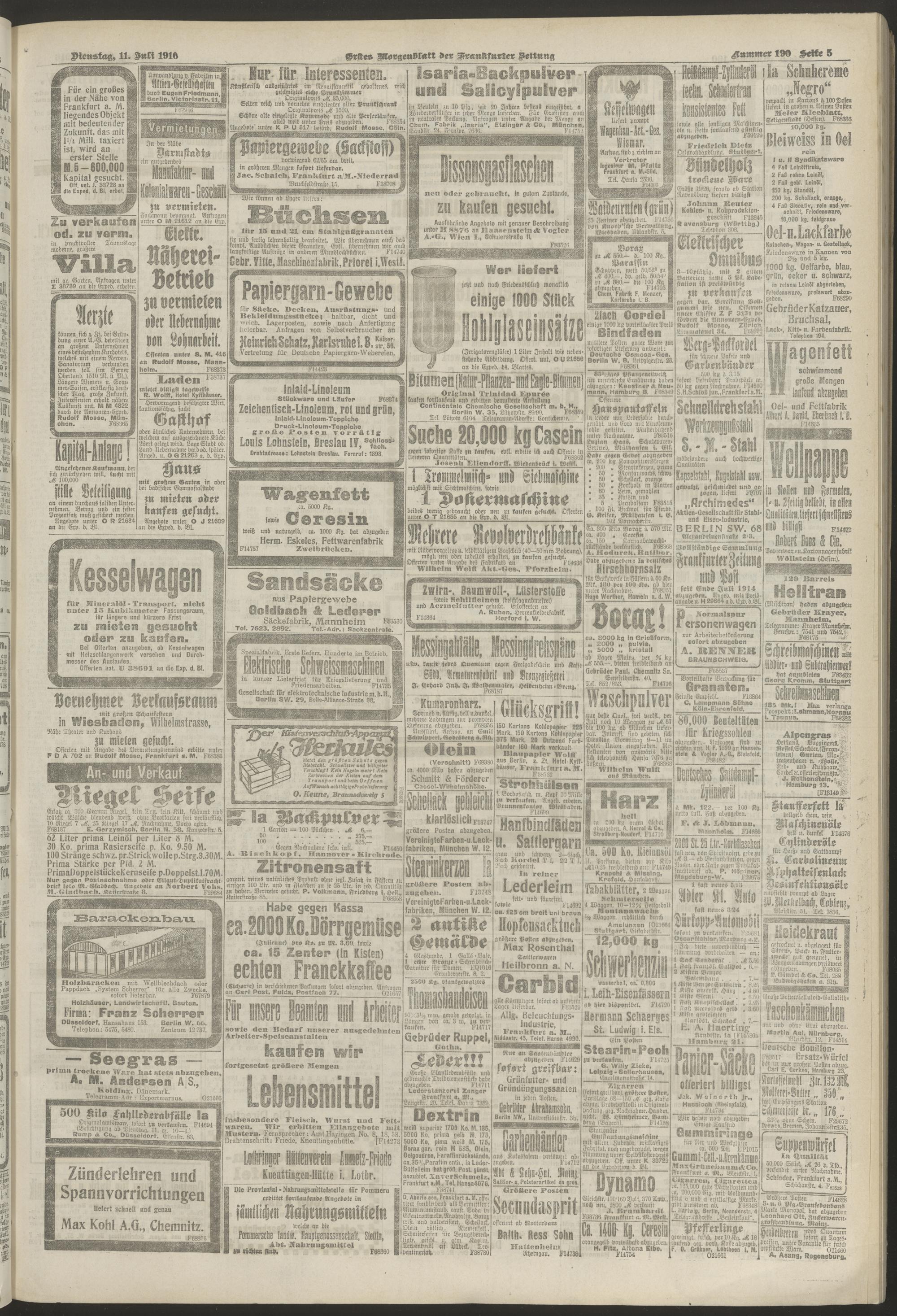 11.07.1916 = Nr. 190. Erstes Morgenblatt