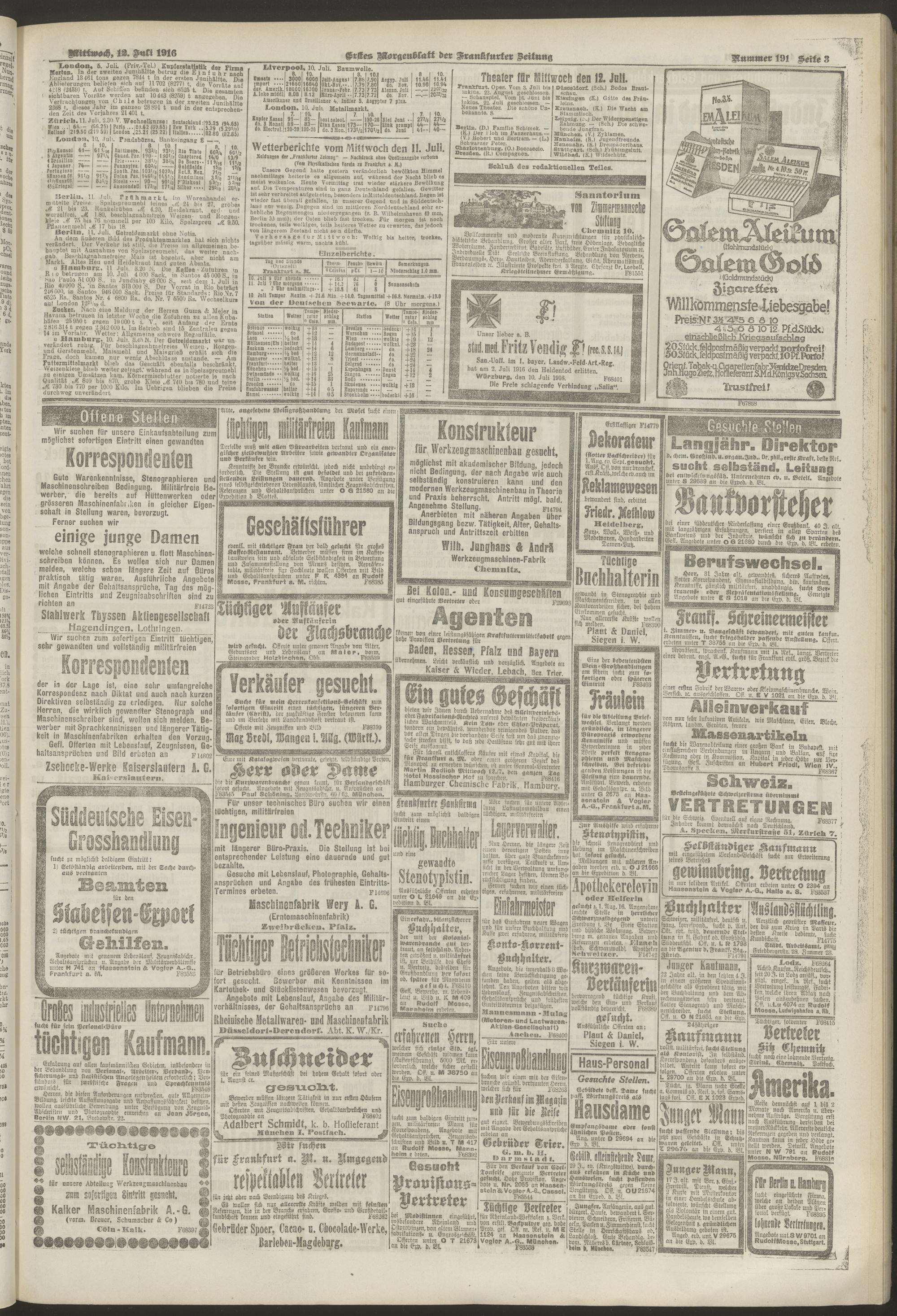 12.07.1916 = Nr. 191. Erstes Morgenblatt