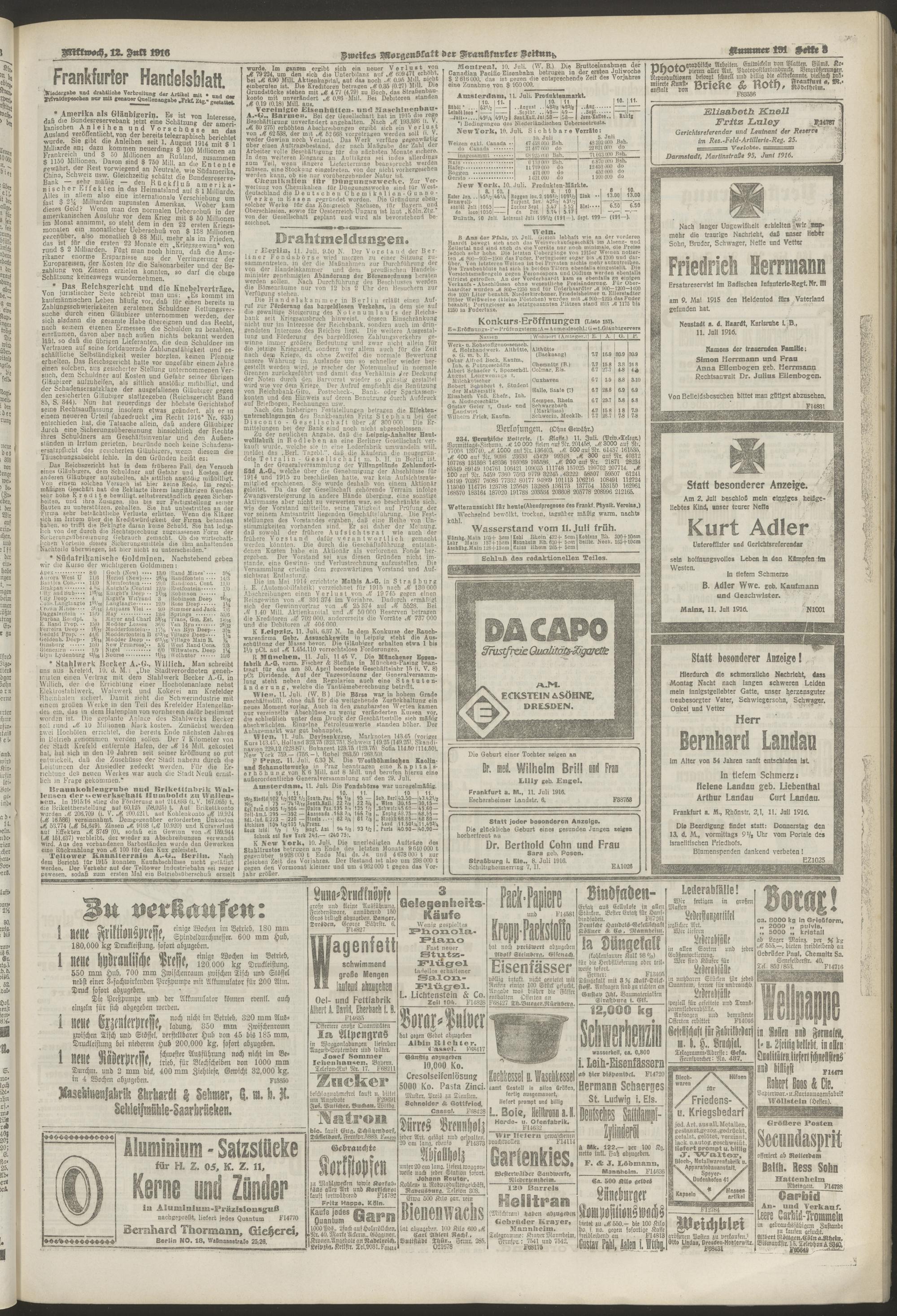 12.07.1916 = Nr. 191. Zweites Morgenblatt