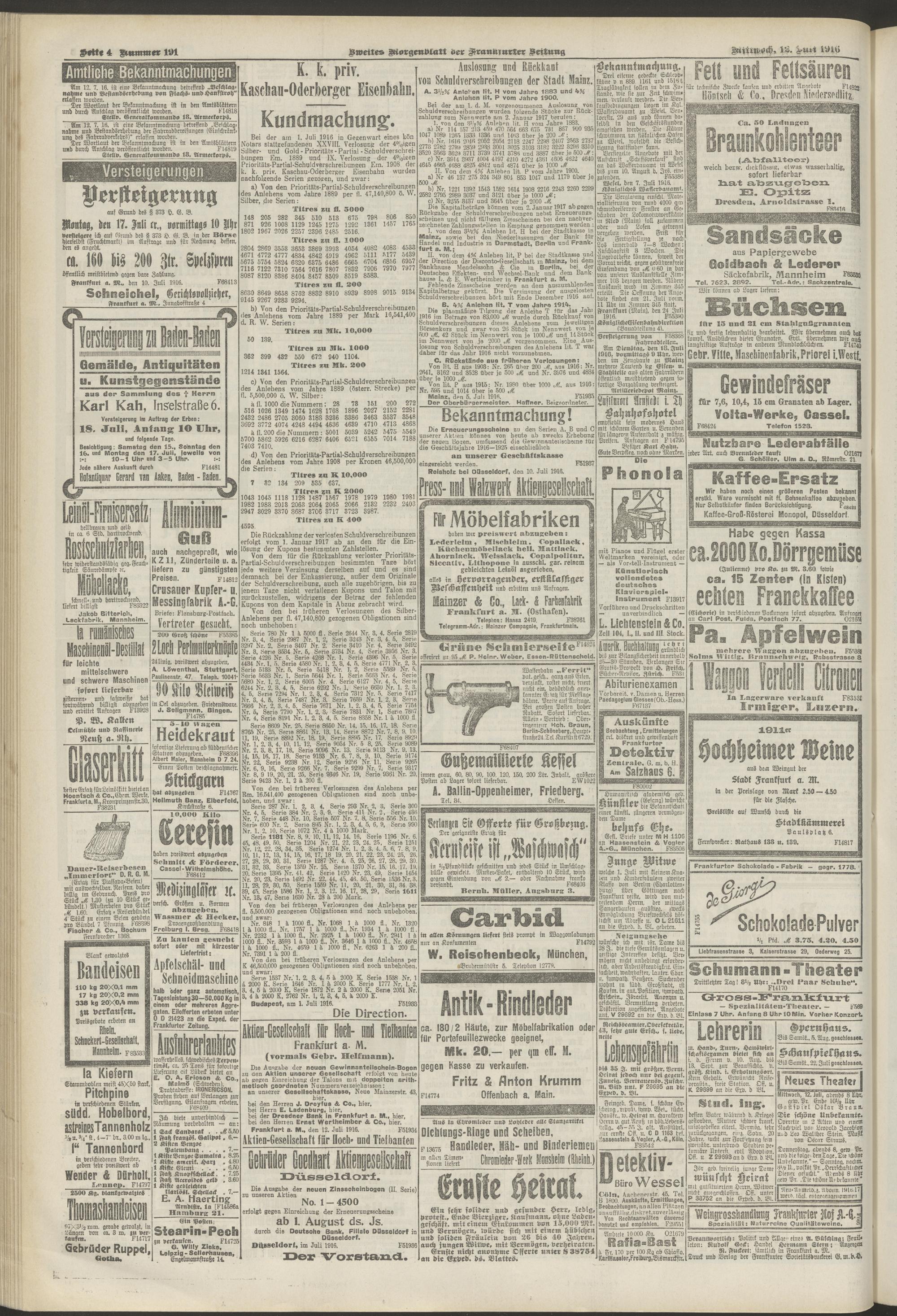 12.07.1916 = Nr. 191. Zweites Morgenblatt