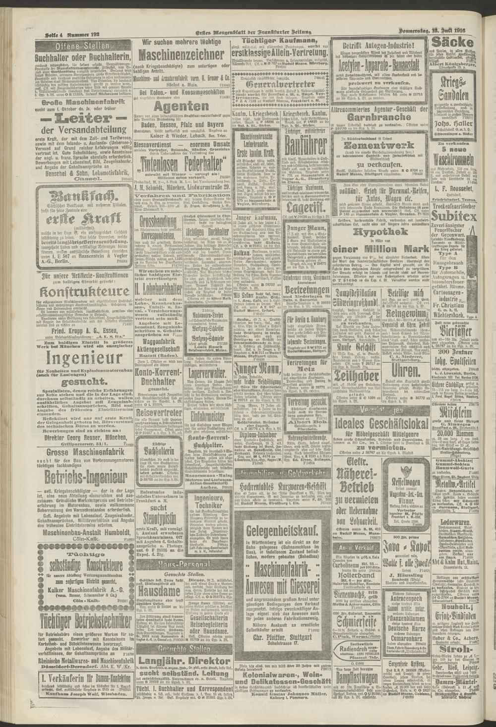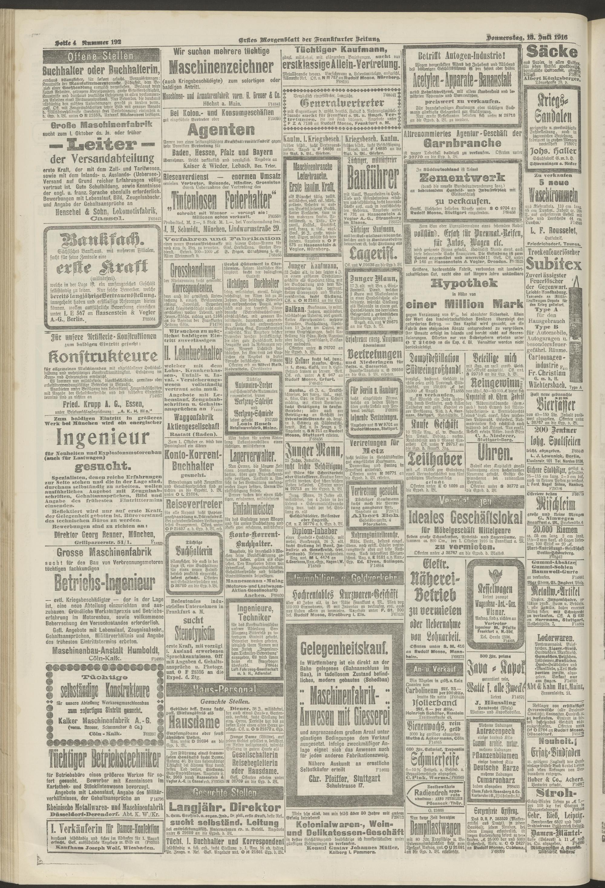 13.07.1916 = Nr. 192. Erstes Morgenblatt