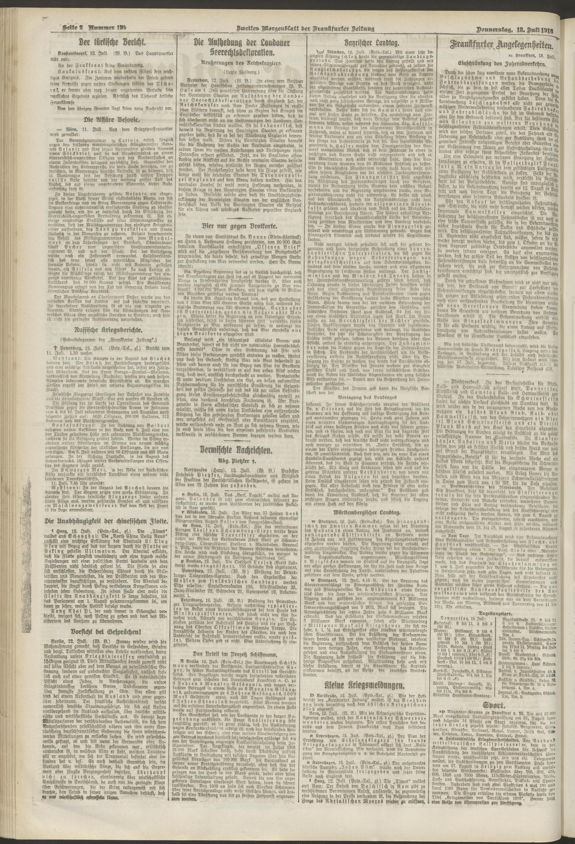 13.07.1916 = Nr. 192. Zweites Morgenblatt