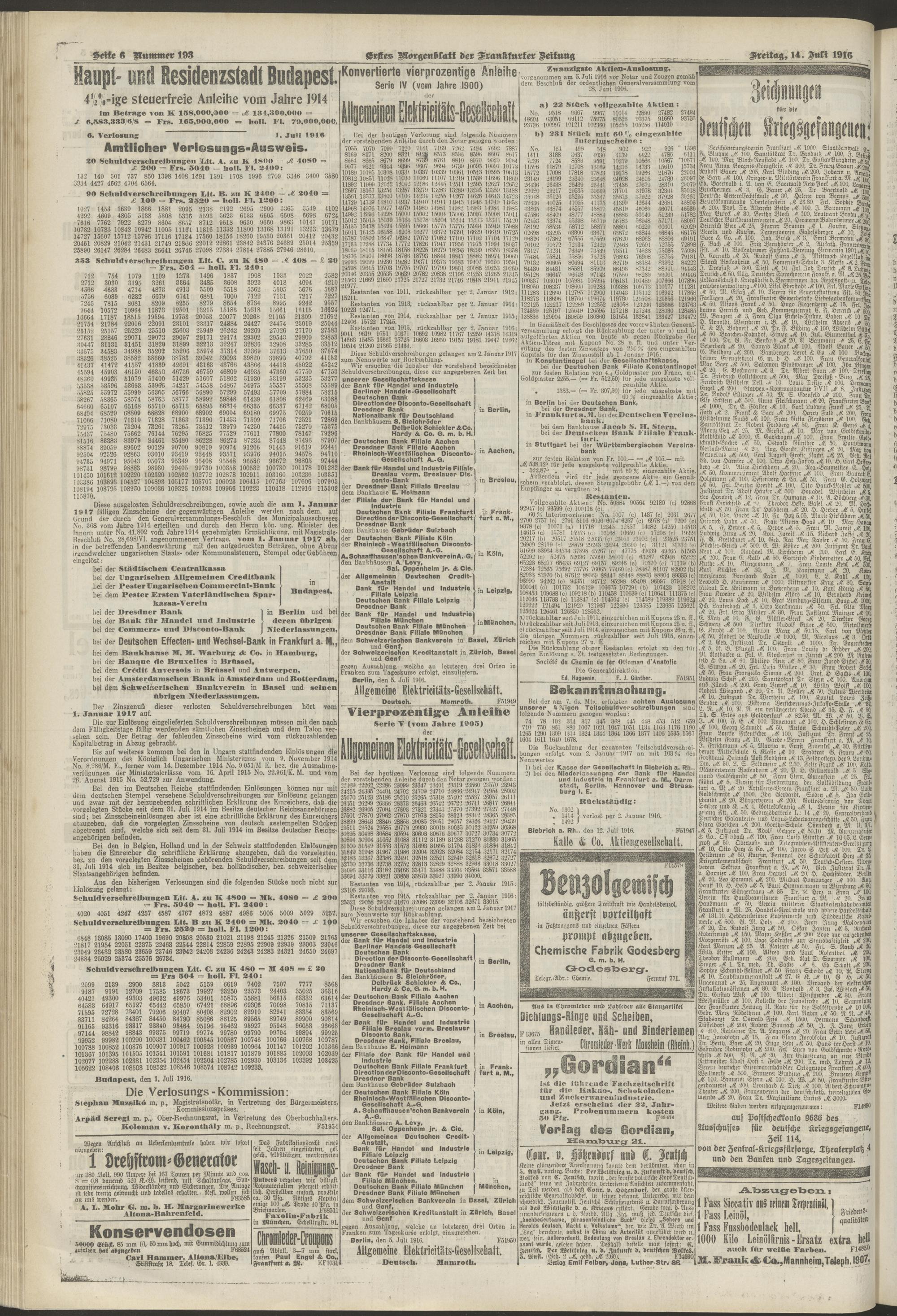 14.07.1916 = Nr. 193. Erstes Morgenblatt