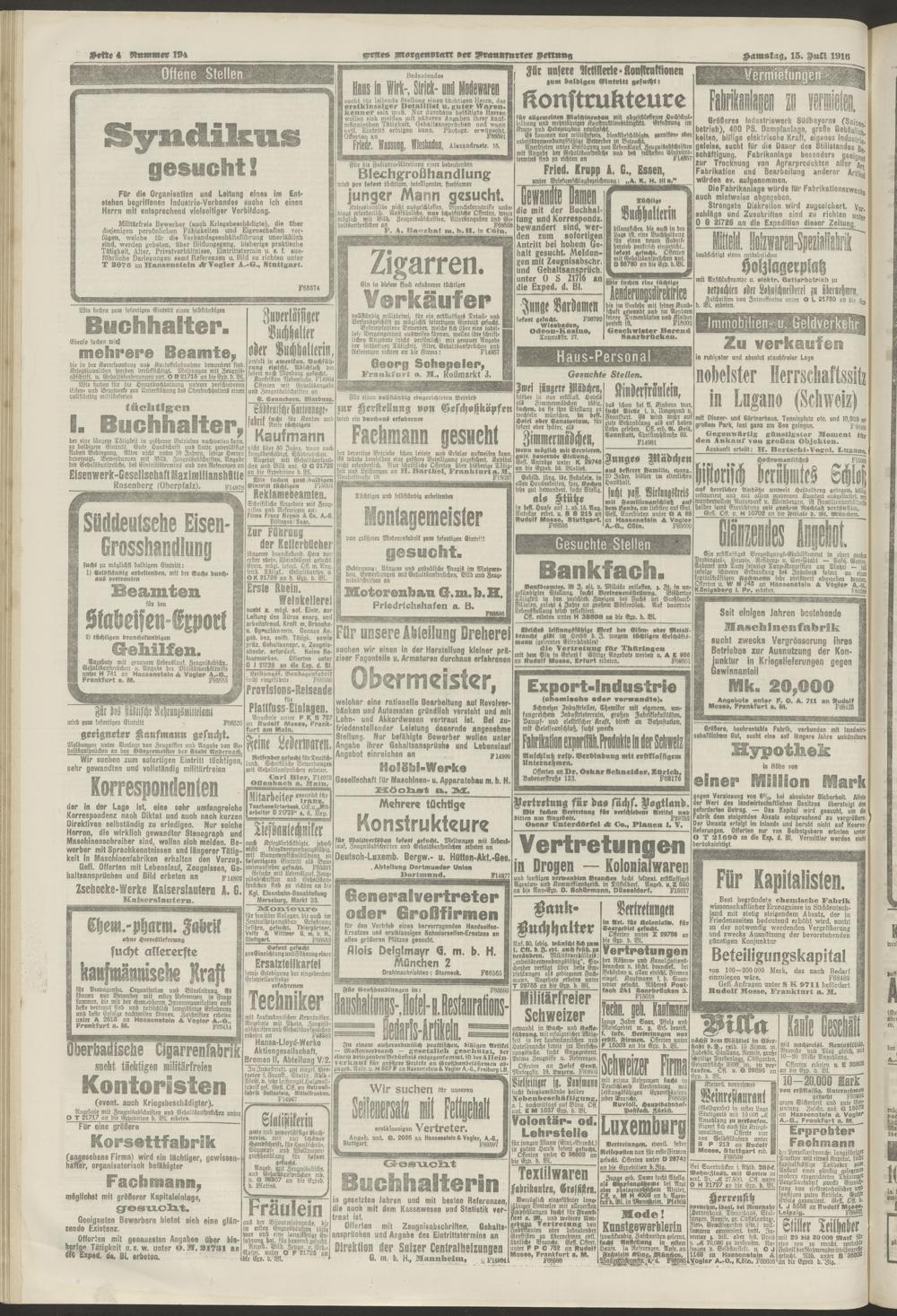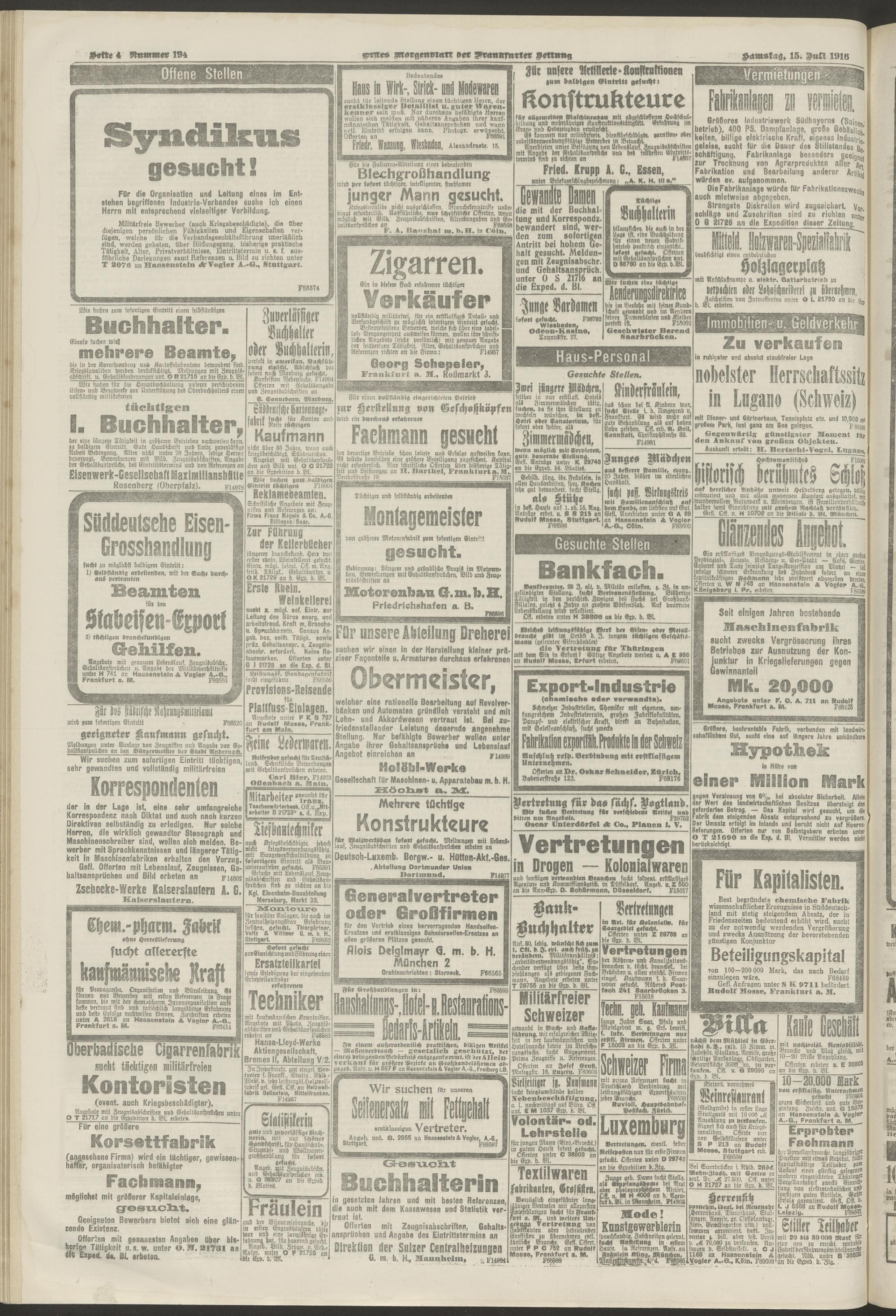 15.07.1916 = Nr. 194. Erstes Morgenblatt