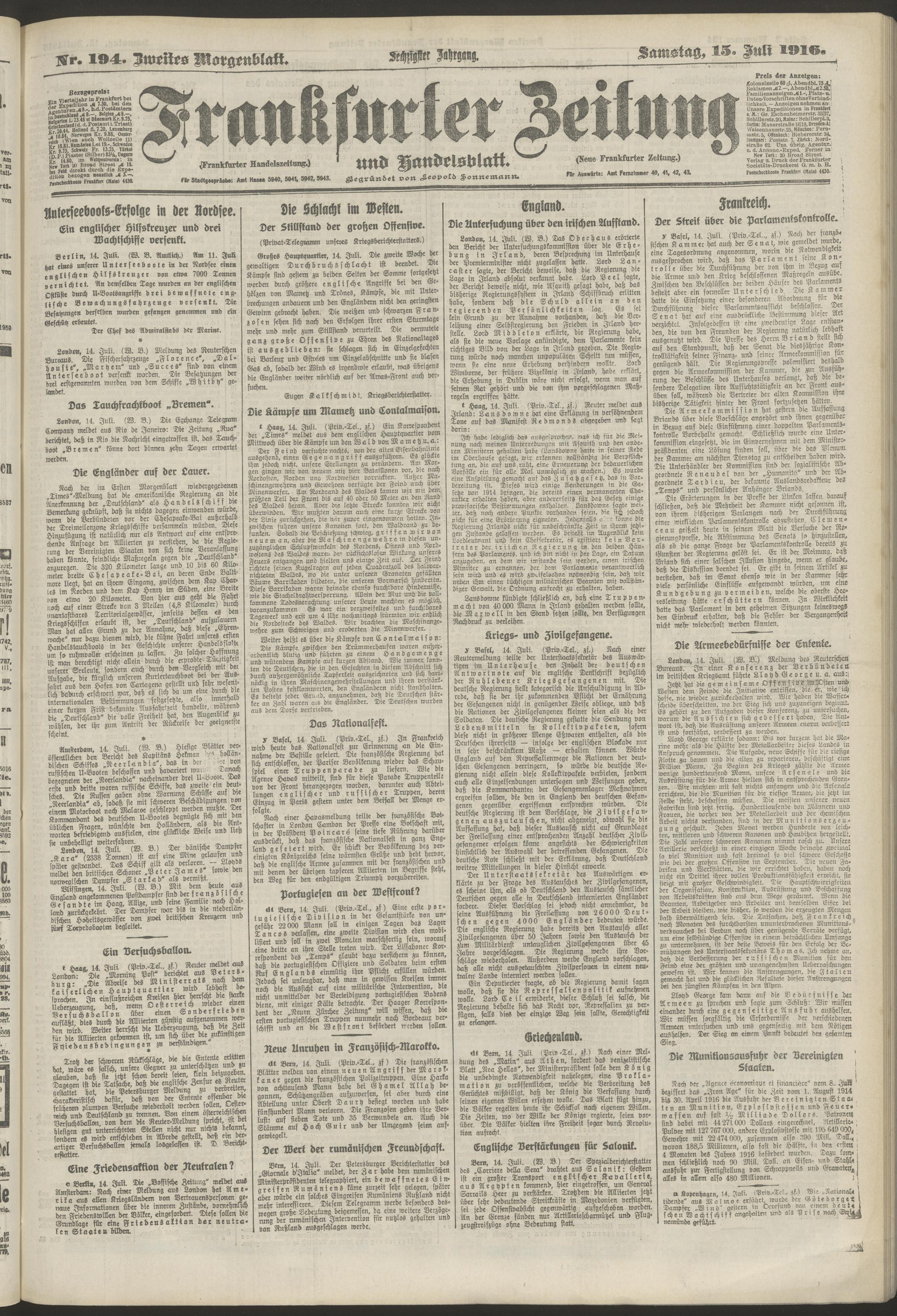 15.07.1916 = Nr. 194. Zweites Morgenblatt