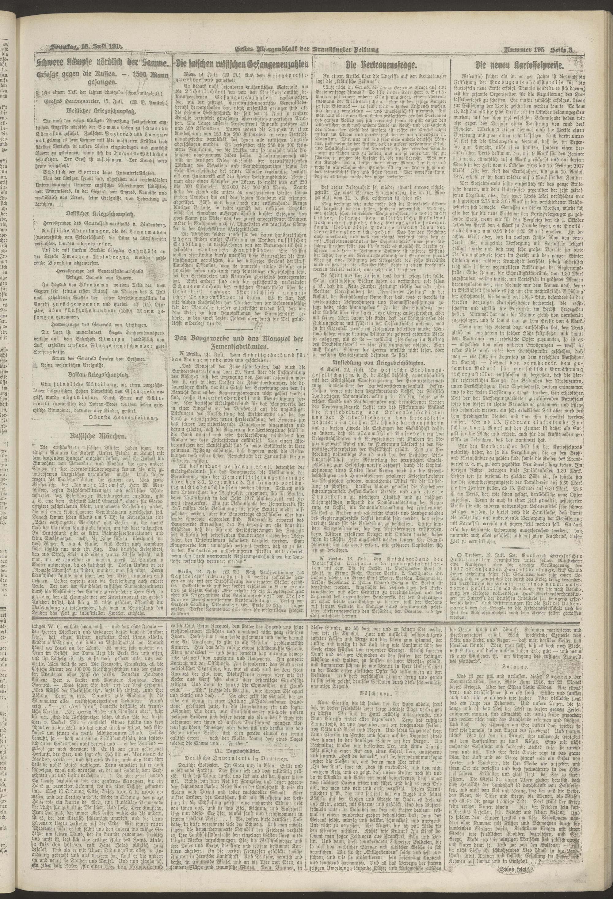 16.07.1916 = Nr. 195. Erstes Morgenblatt