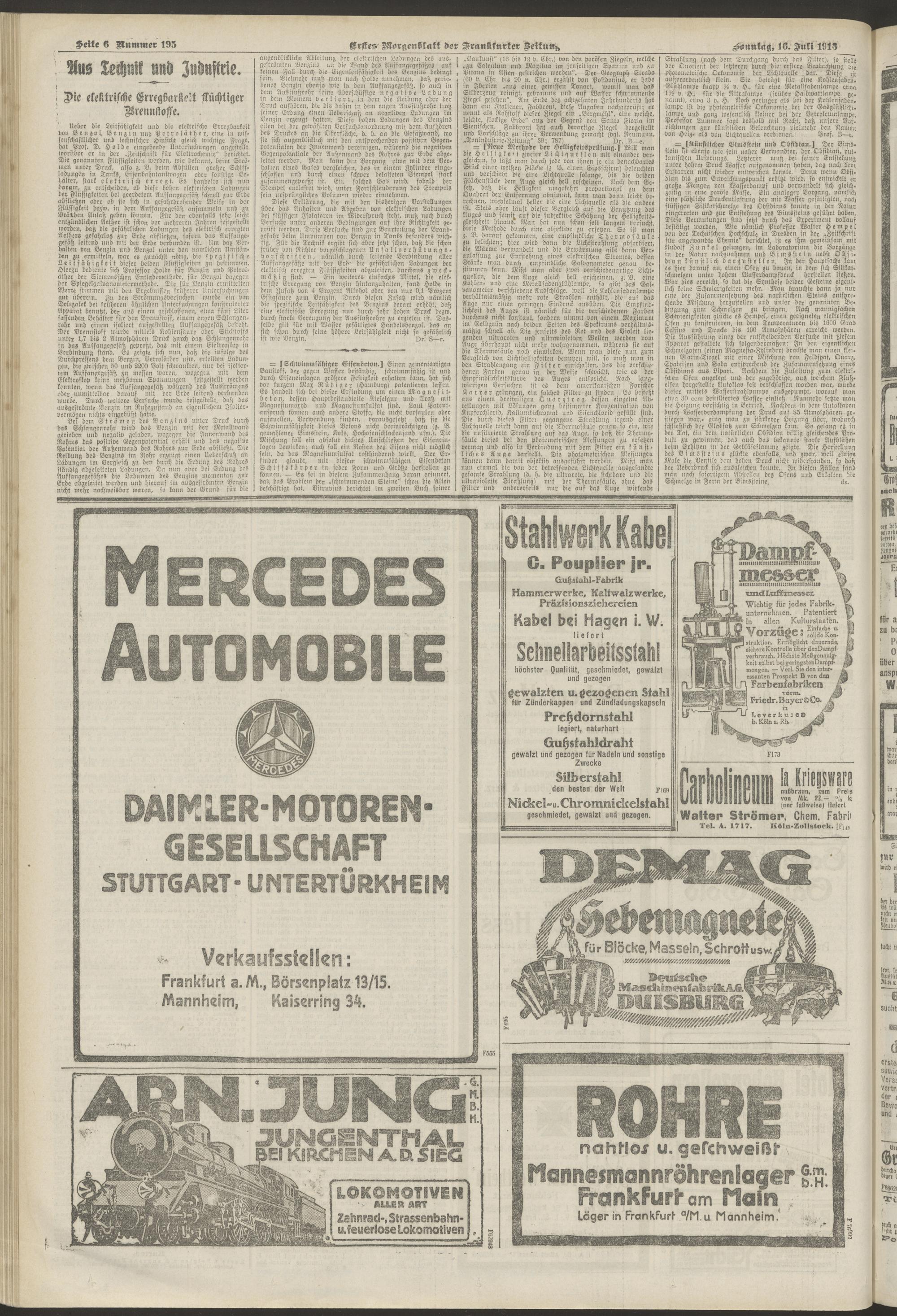 16.07.1916 = Nr. 195. Erstes Morgenblatt