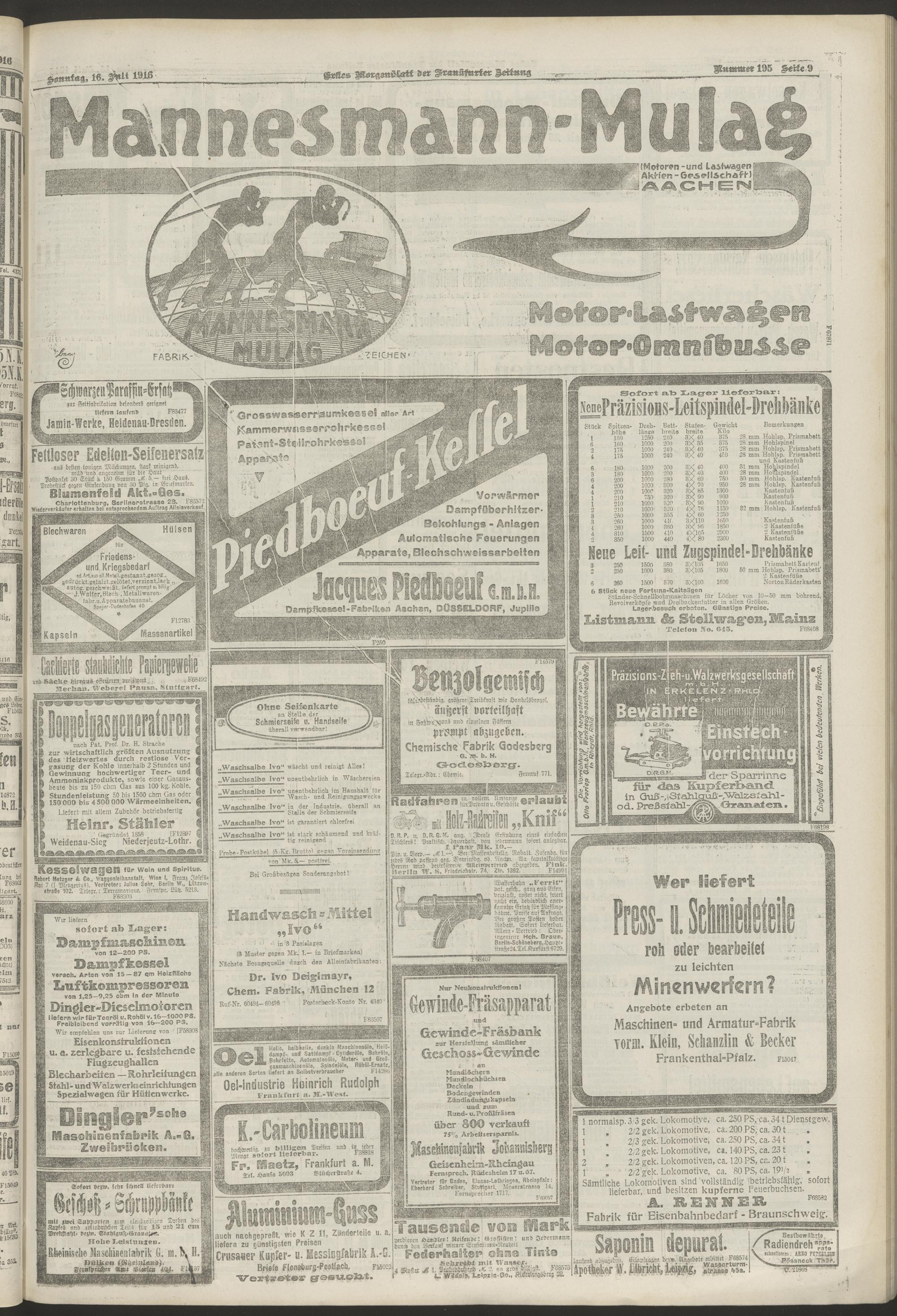 16.07.1916 = Nr. 195. Erstes Morgenblatt