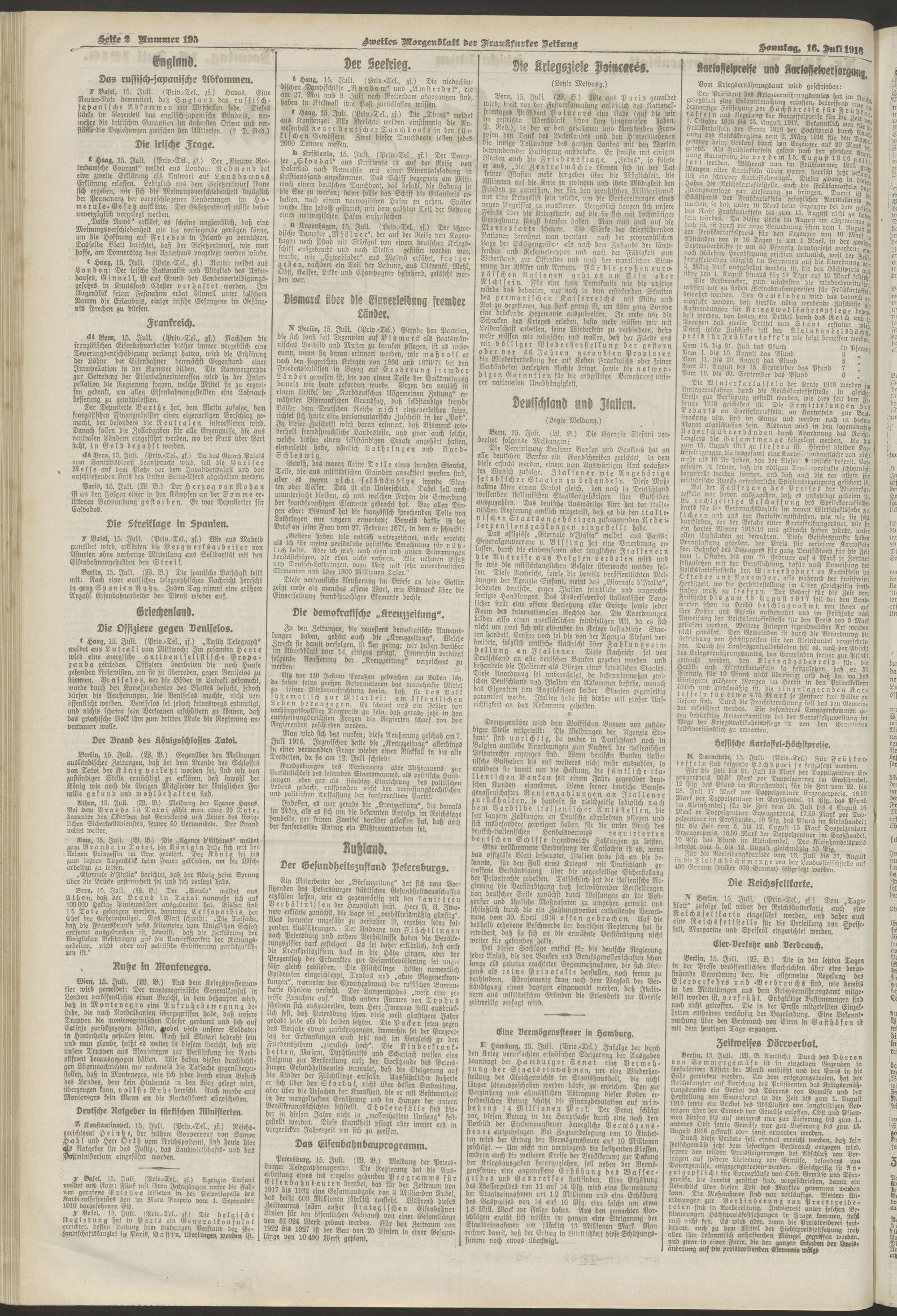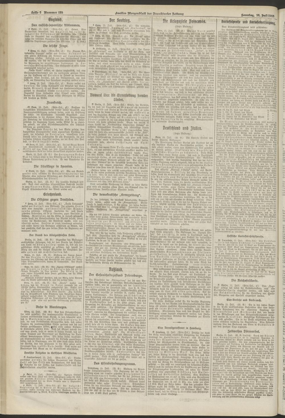 16.07.1916 = Nr. 195. Zweites Morgenblatt