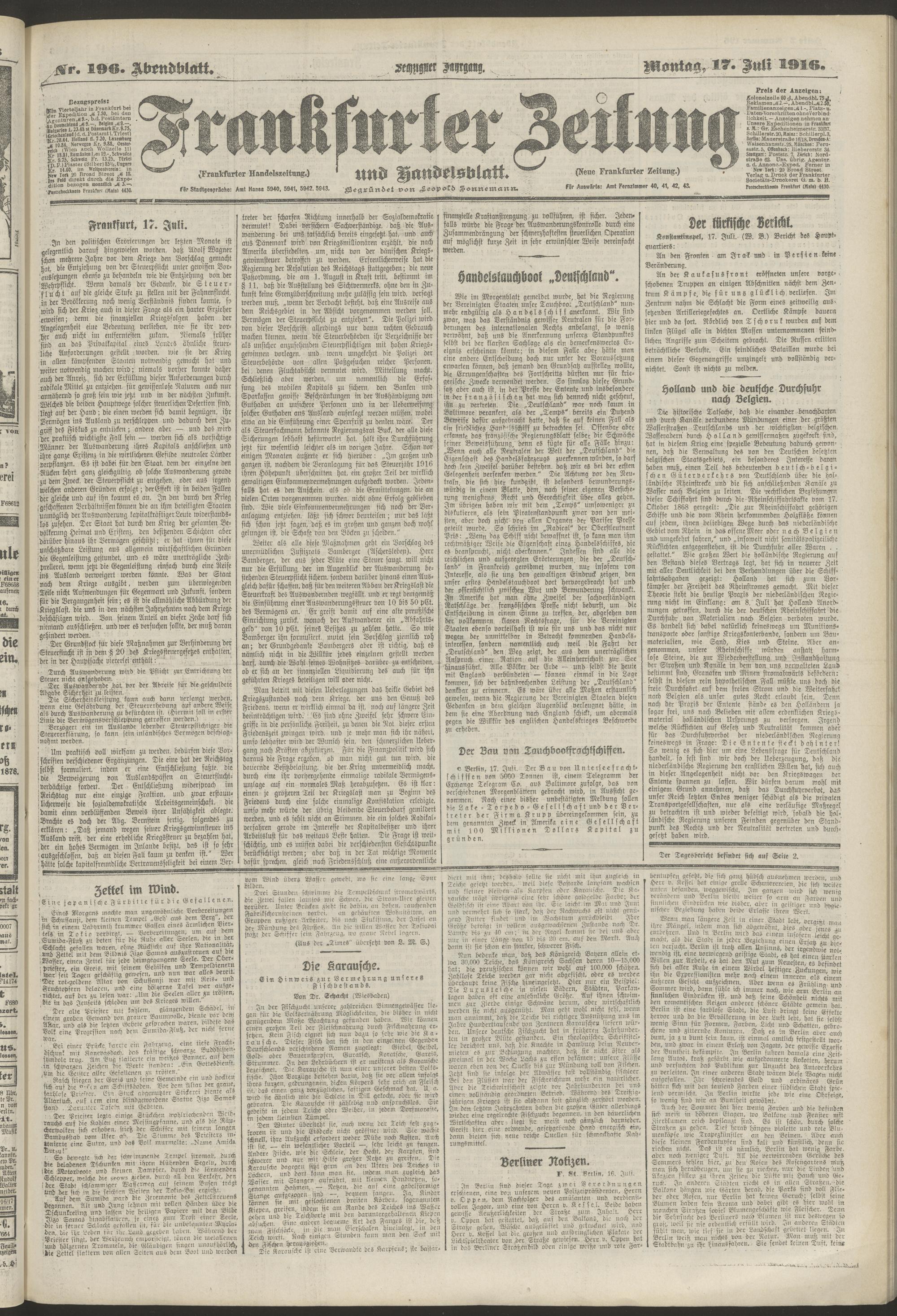 17.07.1916 = Nr. 196. Abendblatt