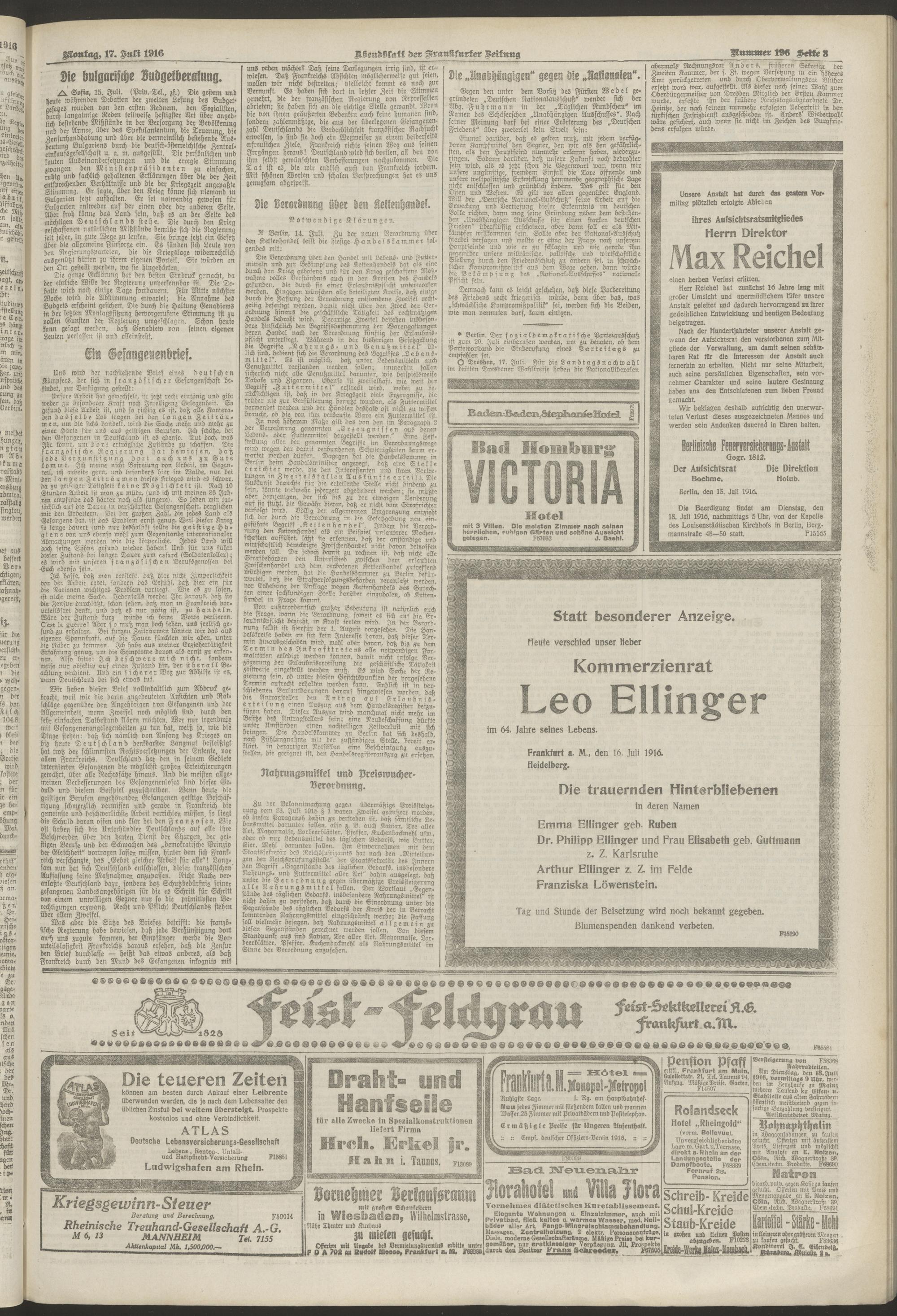 17.07.1916 = Nr. 196. Abendblatt