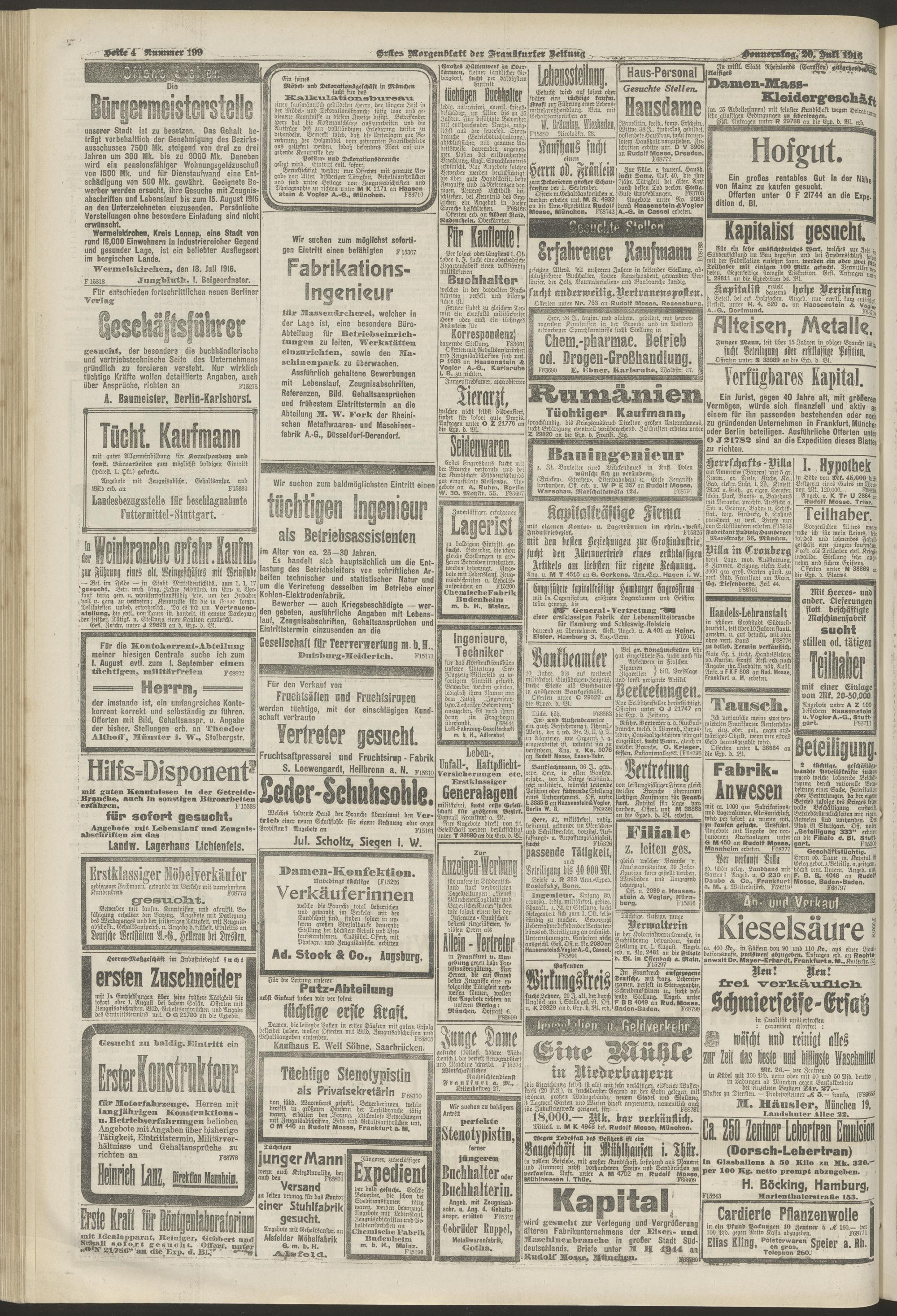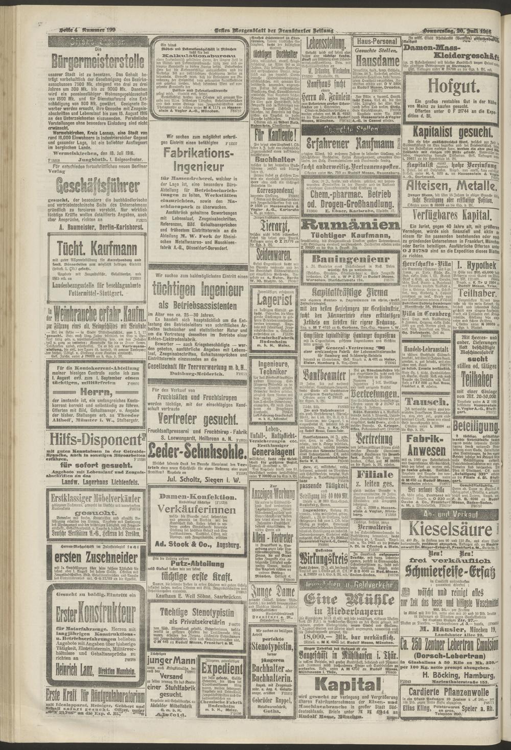20.07.1916 = Nr. 199. Erstes Morgenblatt