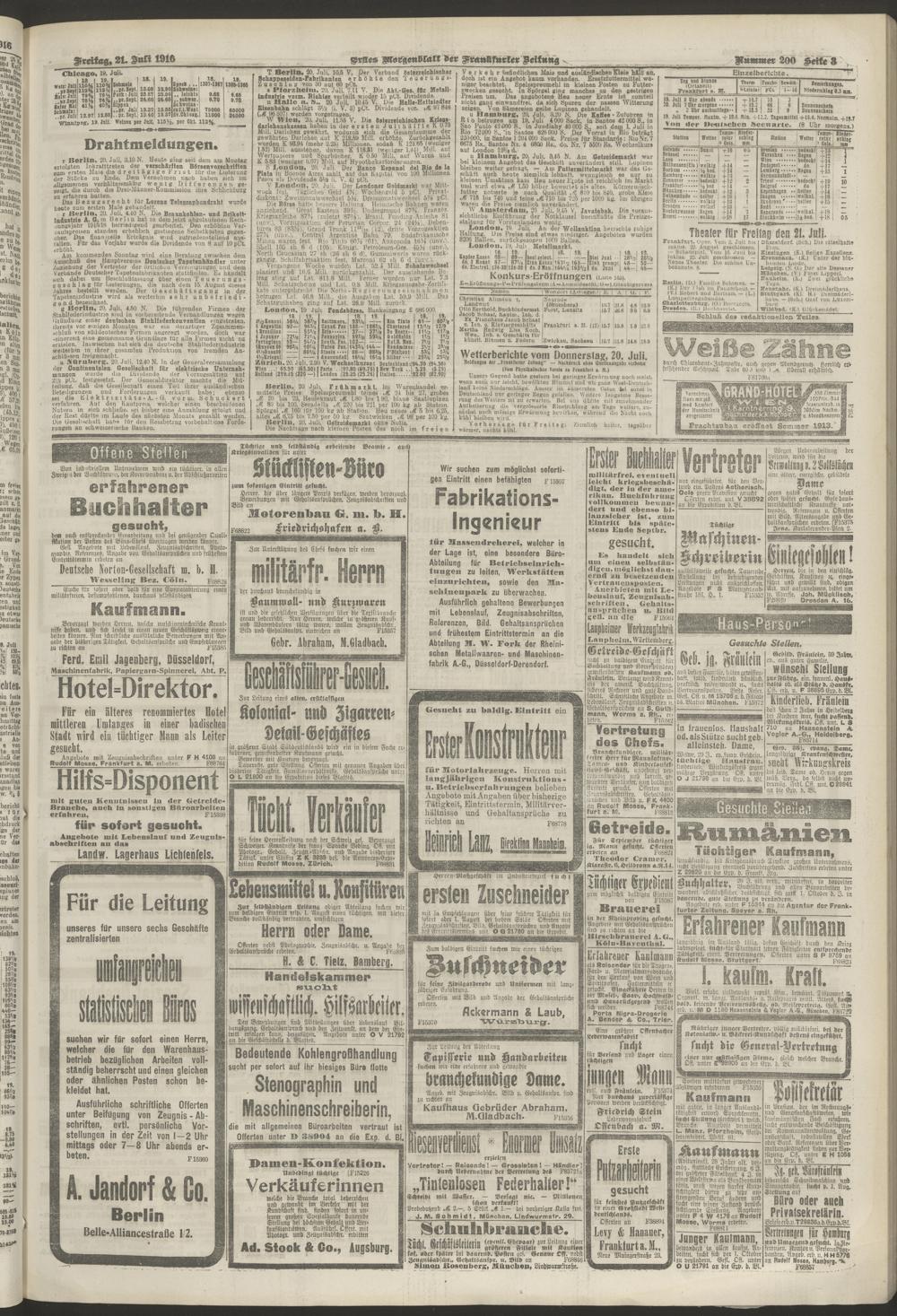 21.07.1916 = Nr. 200. Erstes Morgenblatt