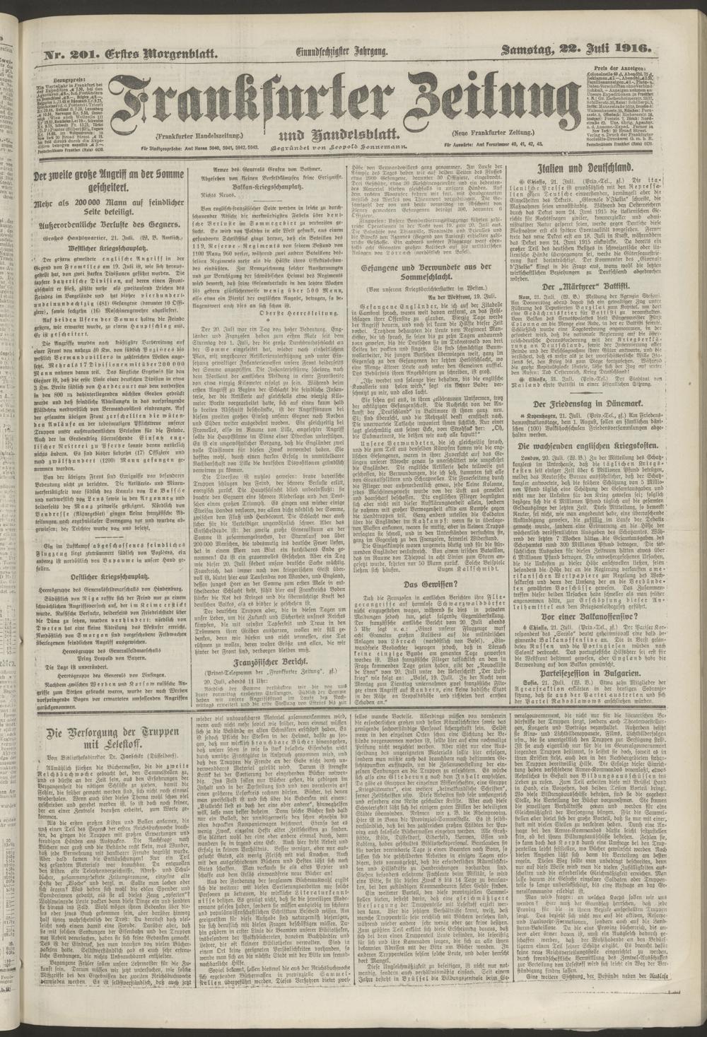 22.07.1916 = Nr. 201. Erstes Morgenblatt