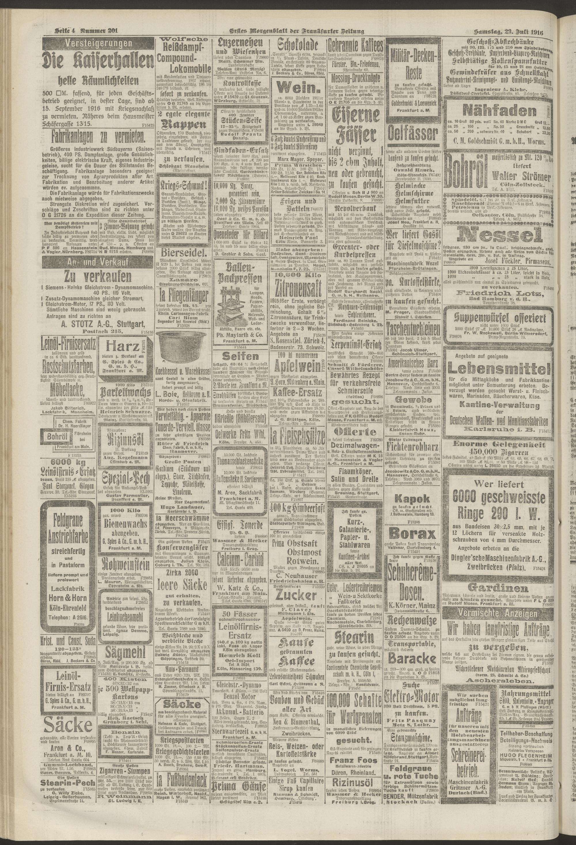 22.07.1916 = Nr. 201. Erstes Morgenblatt