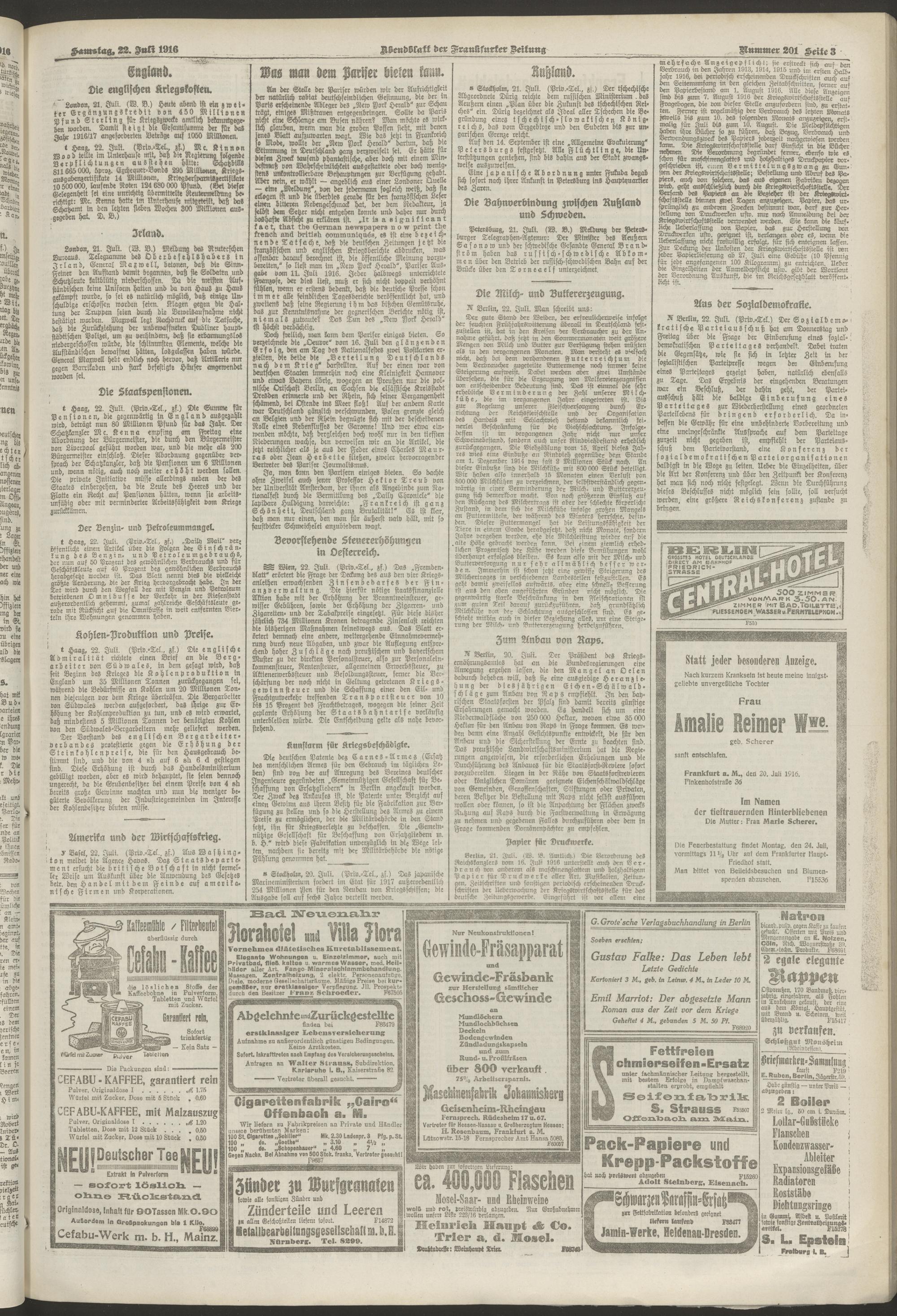 22.07.1916 = Nr. 201. Abendblatt