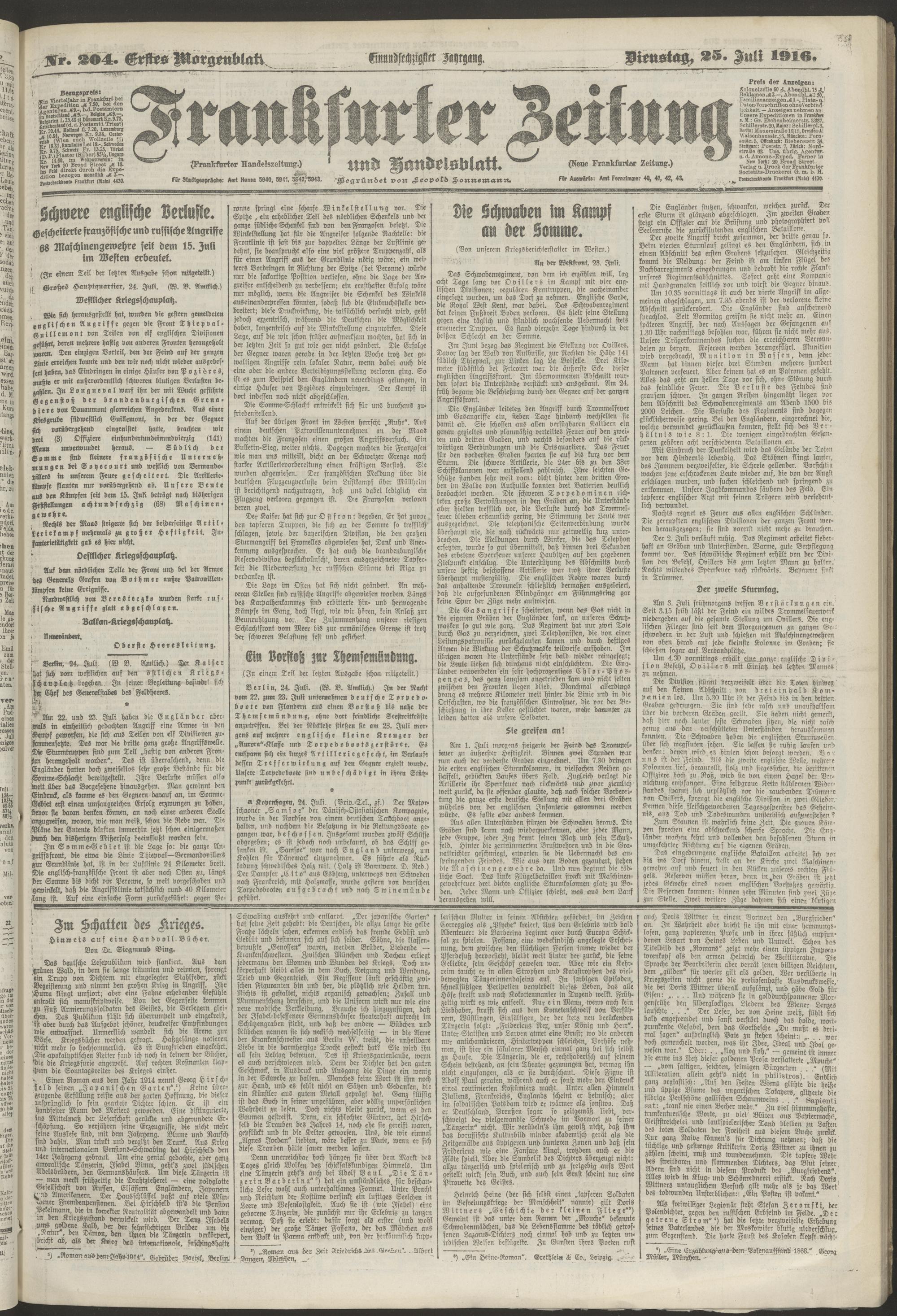 25.07.1916 = Nr. 204. Erstes Morgenblatt