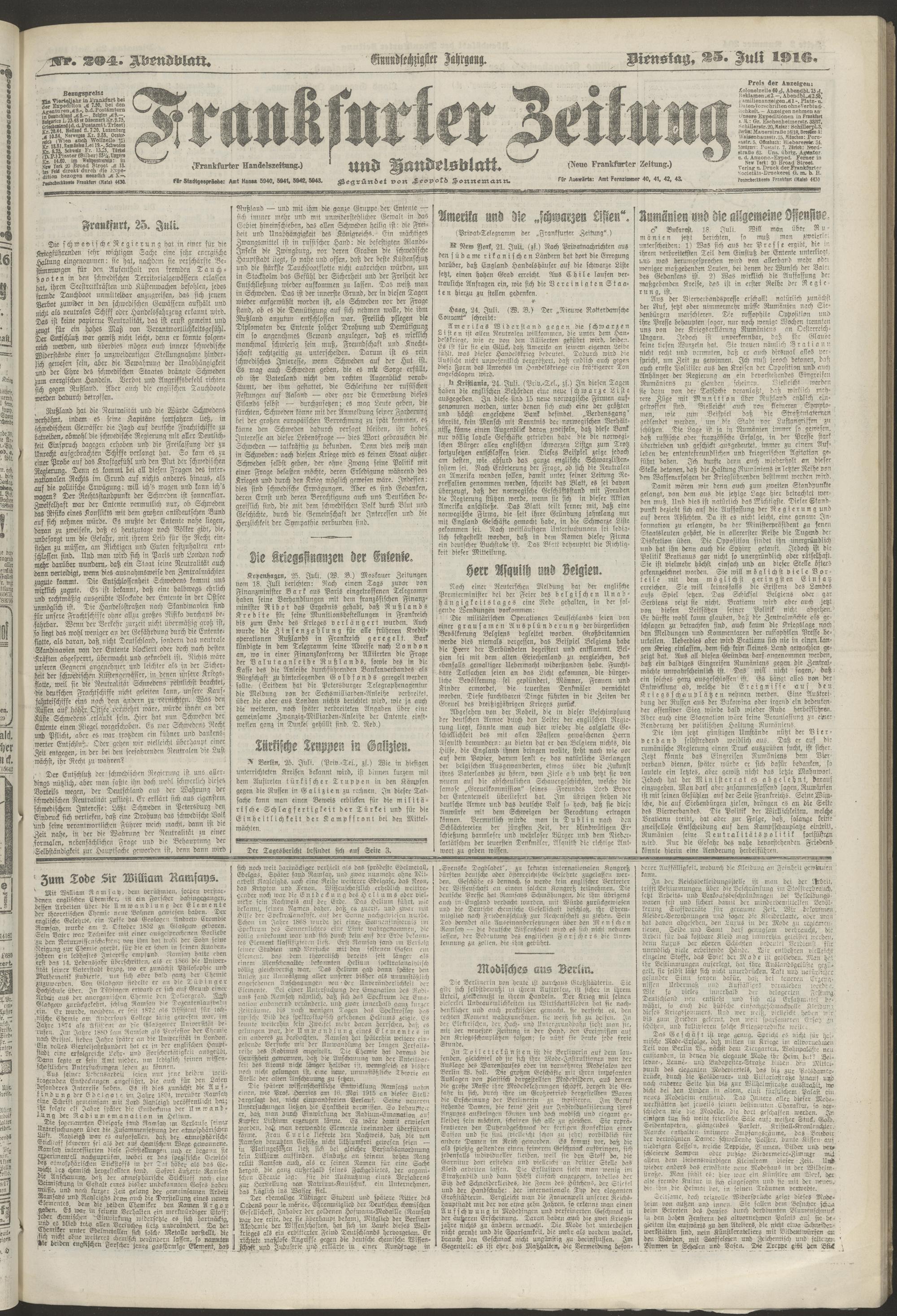 25.07.1916 = Nr. 204. Abendblatt