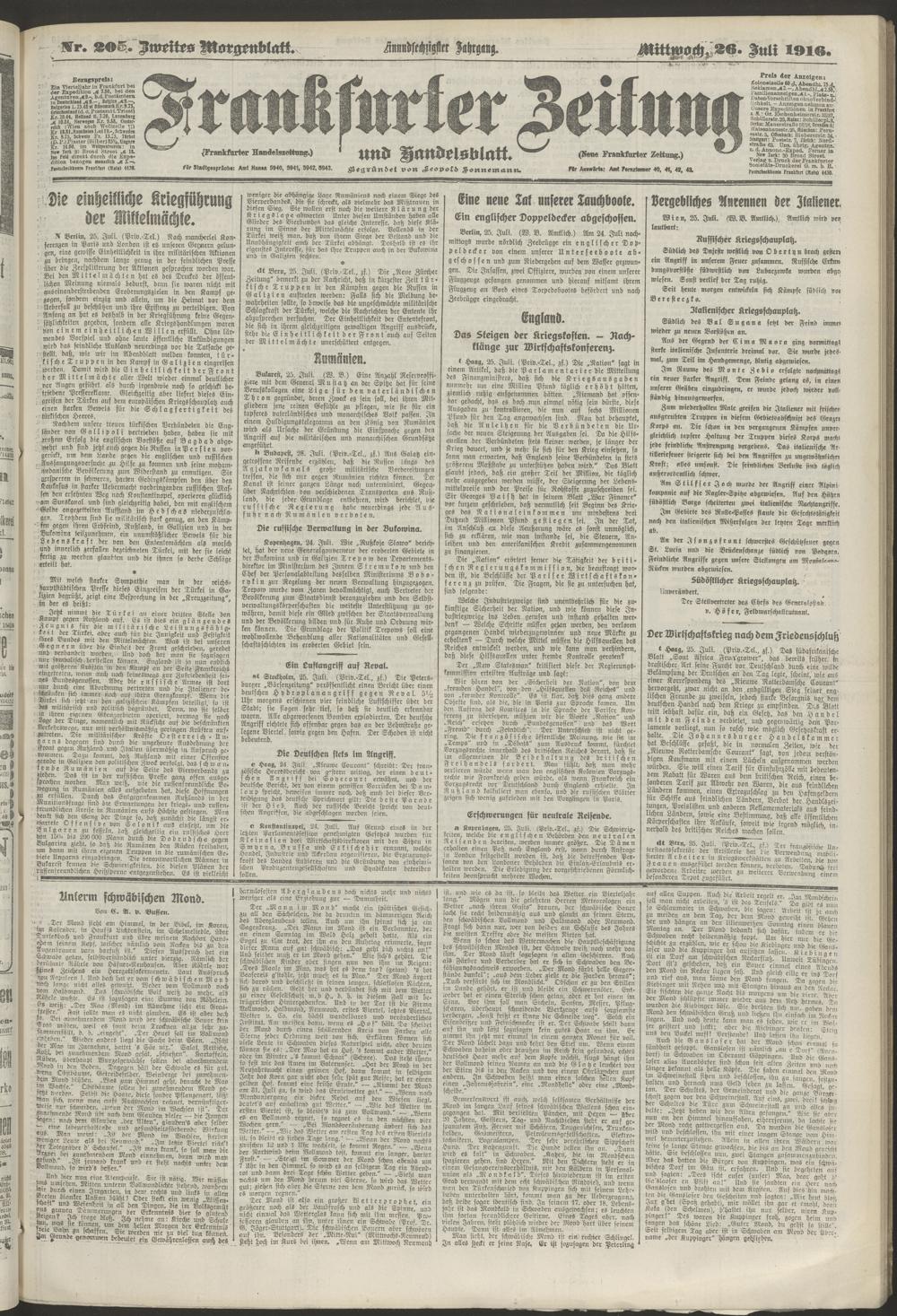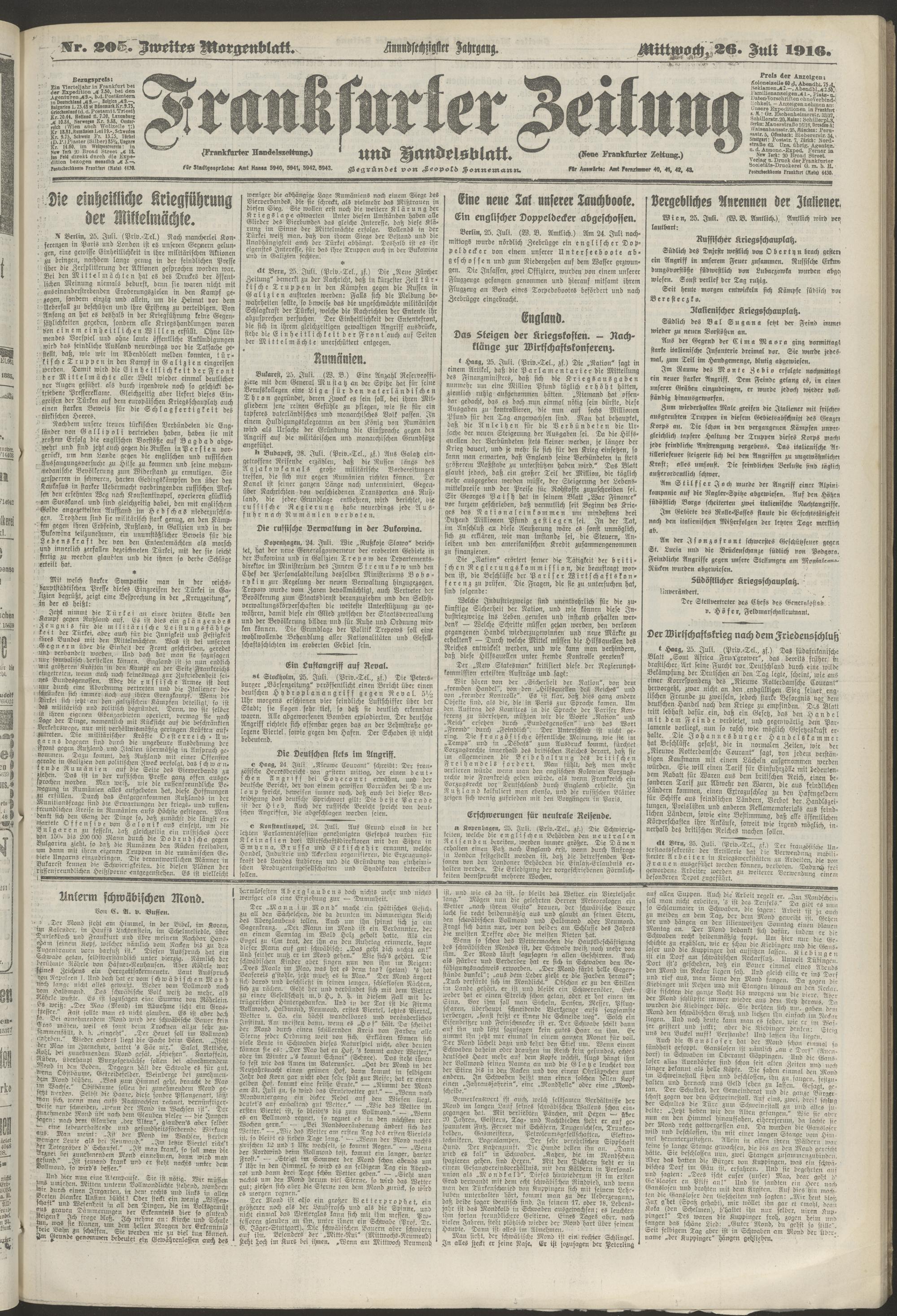 26.07.1916 = Nr. 205. Zweites Morgenblatt