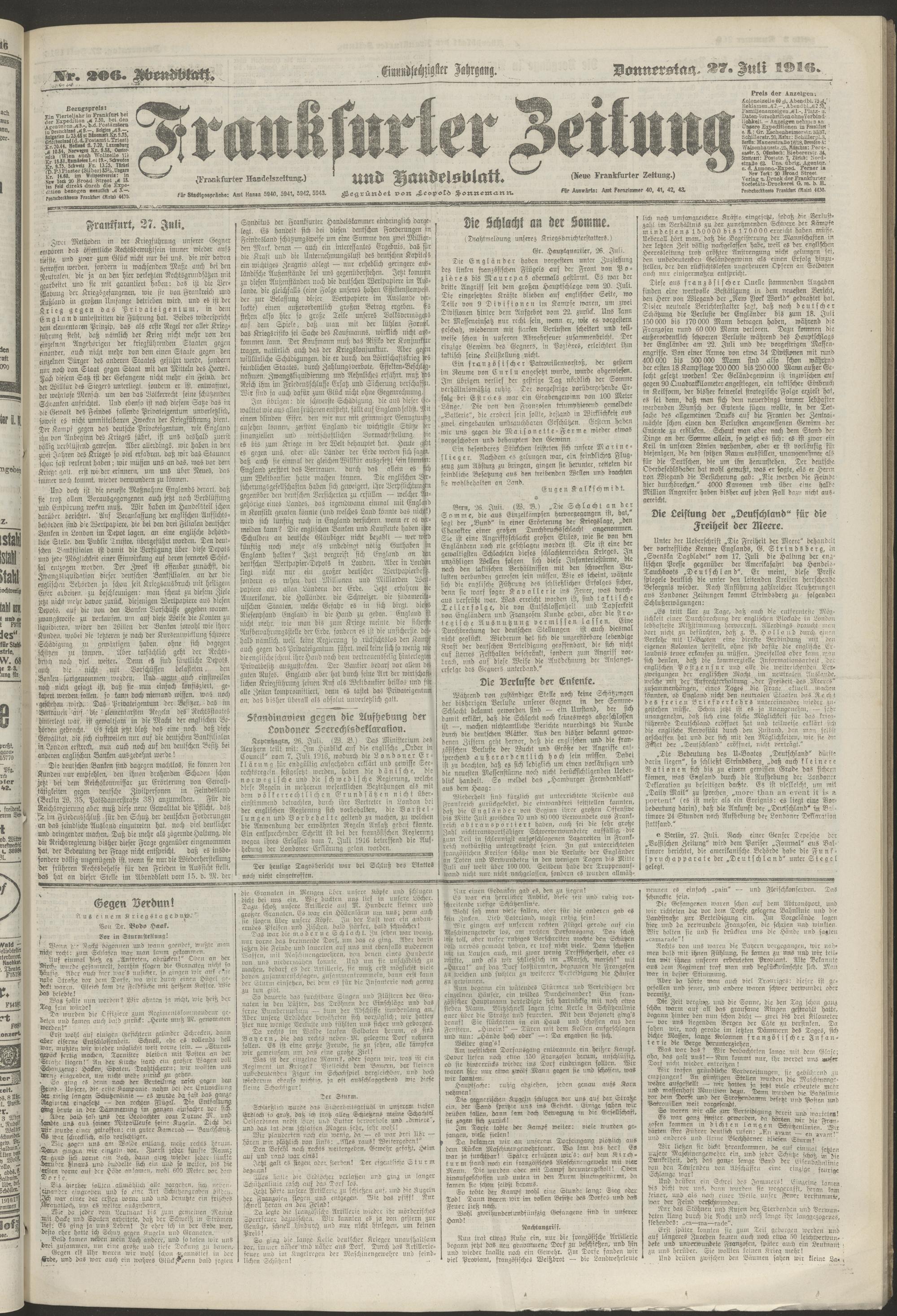 27.07.1916 = Nr. 206. Abendblatt