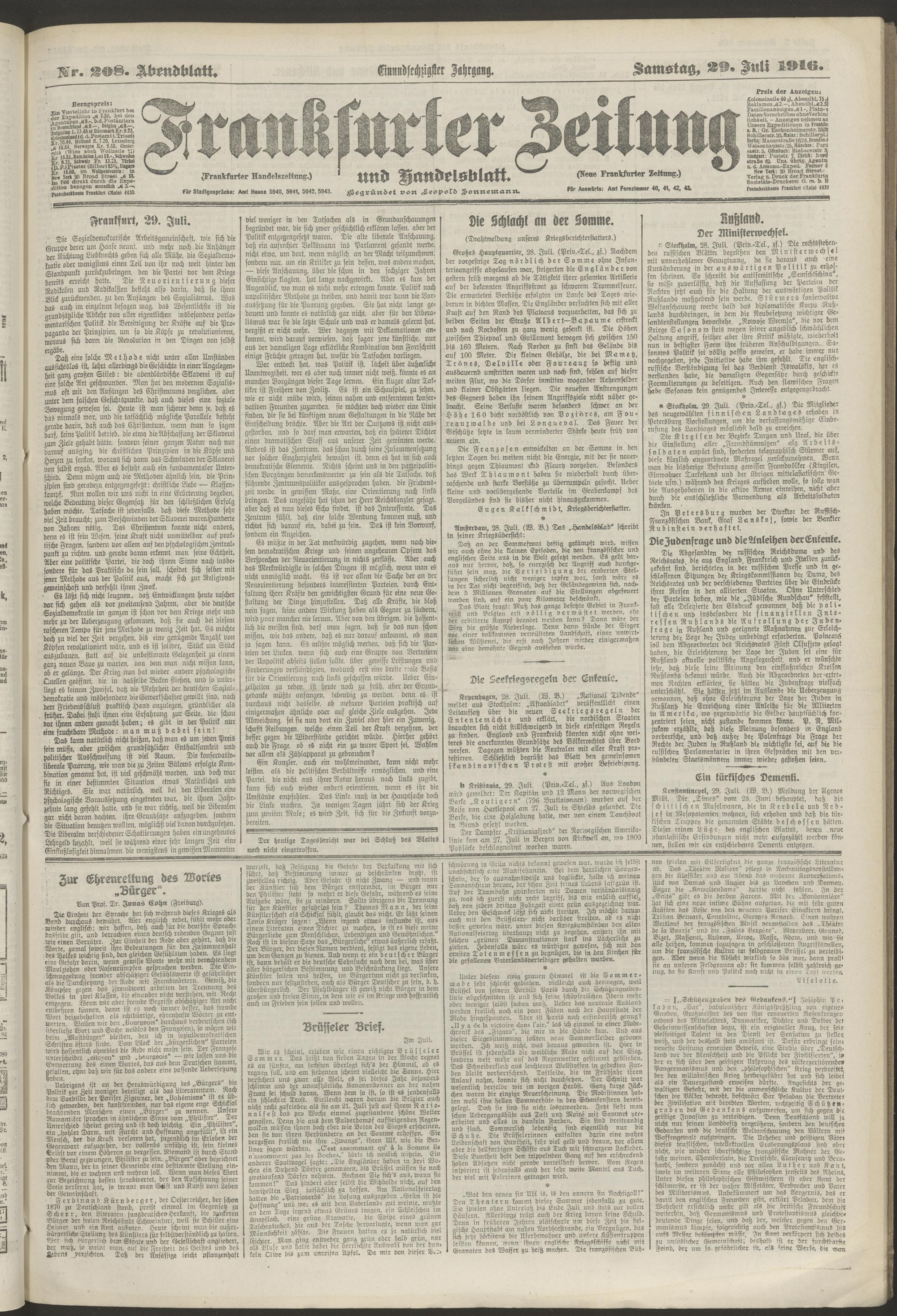 29.07.1916 = Nr. 208. Abendblatt