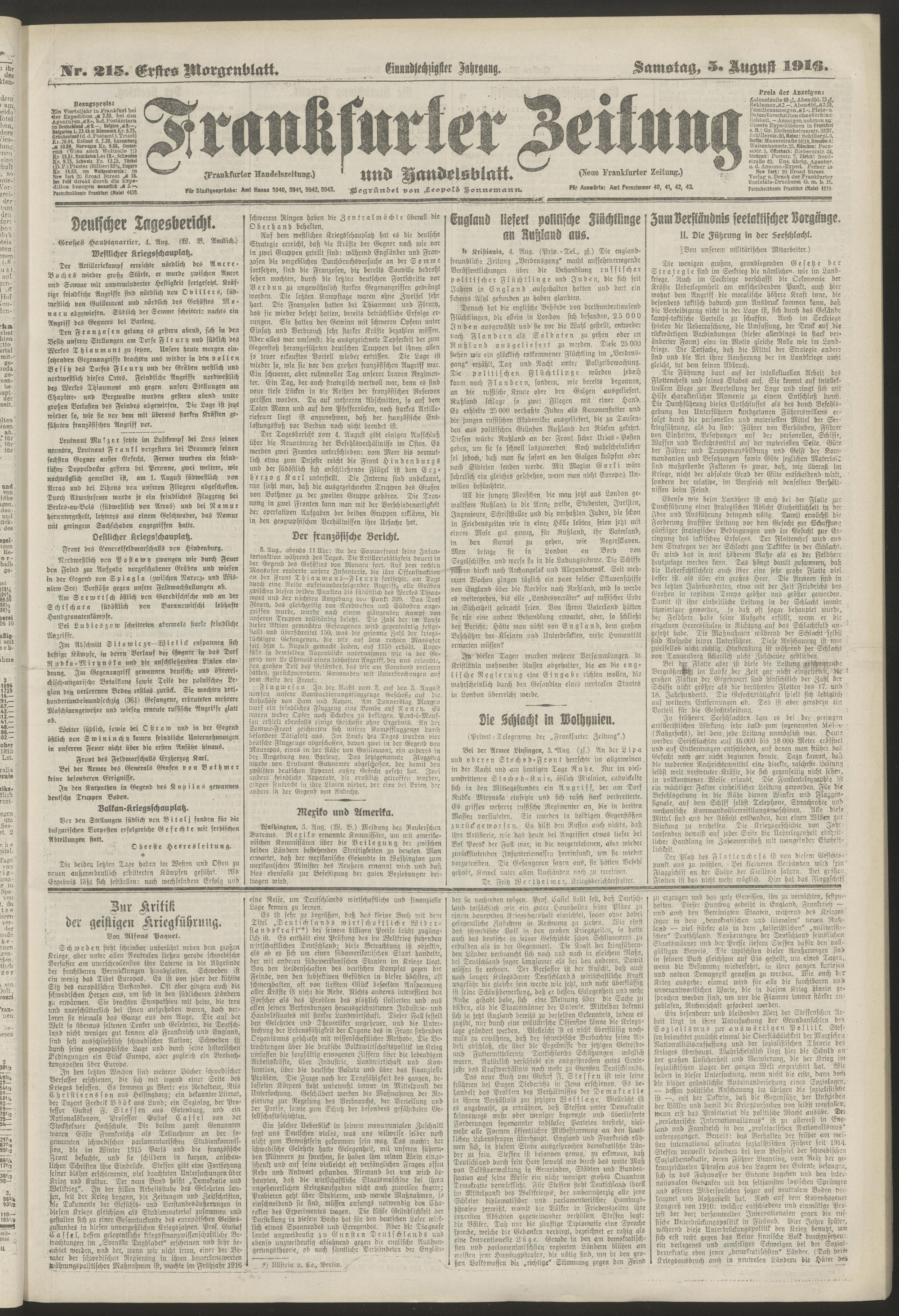 05.08.1916 = Nr. 215. Erstes Morgenblatt