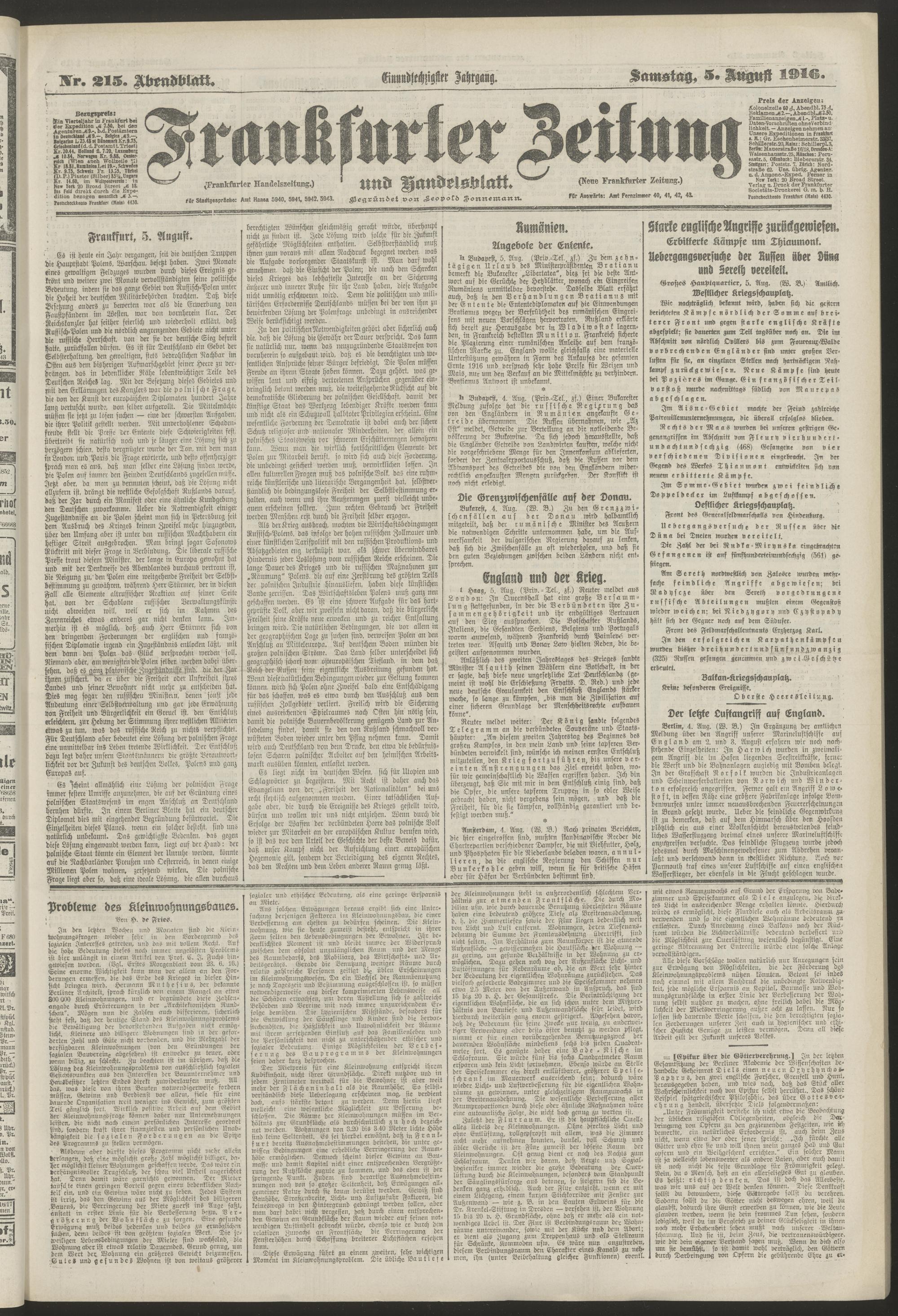 05.08.1916 = Nr. 215. Abendblatt