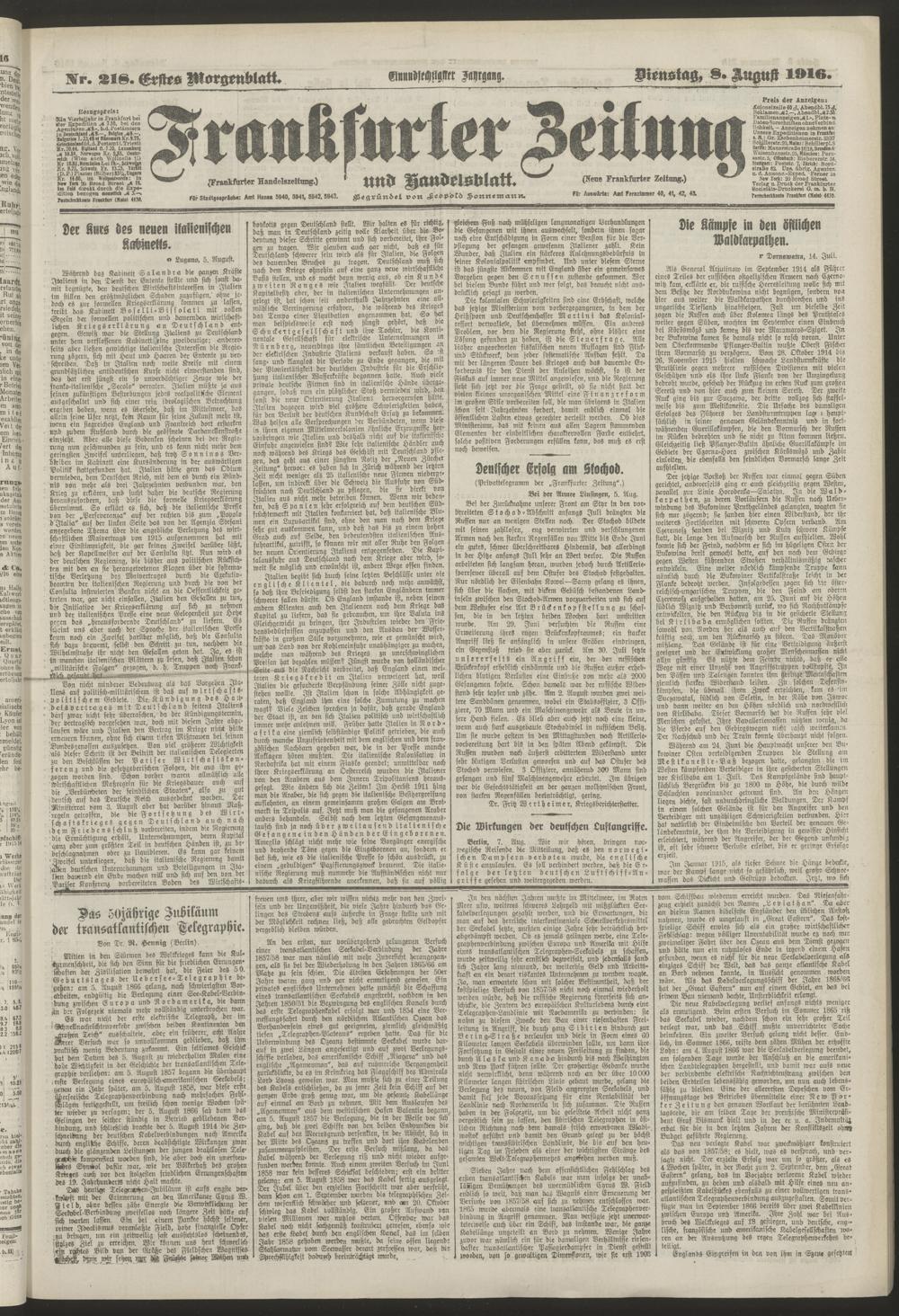 08.08.1916 = Nr. 218. Erstes Morgenblatt