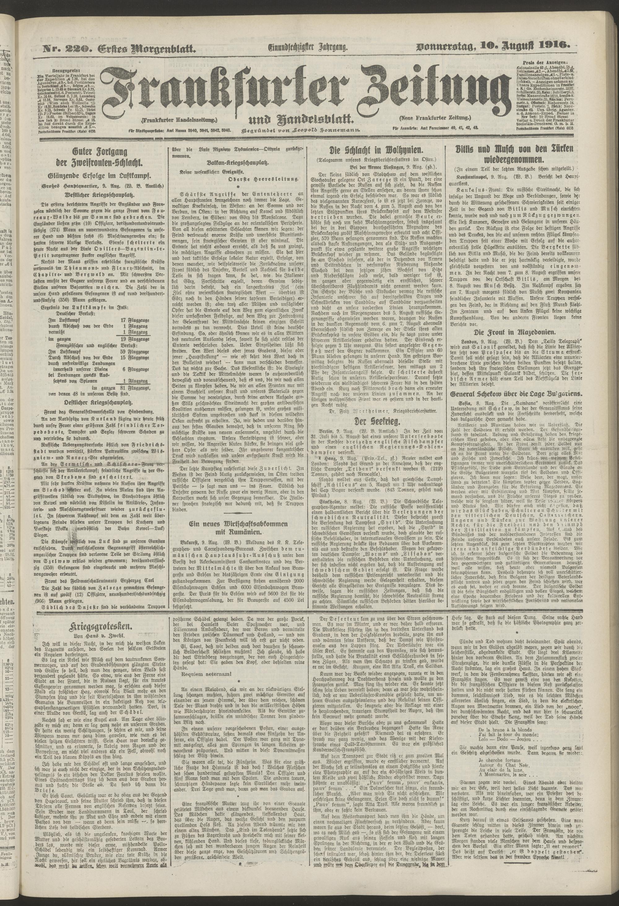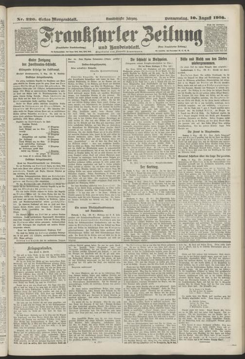 10.08.1916 = Nr. 220. Erstes Morgenblatt