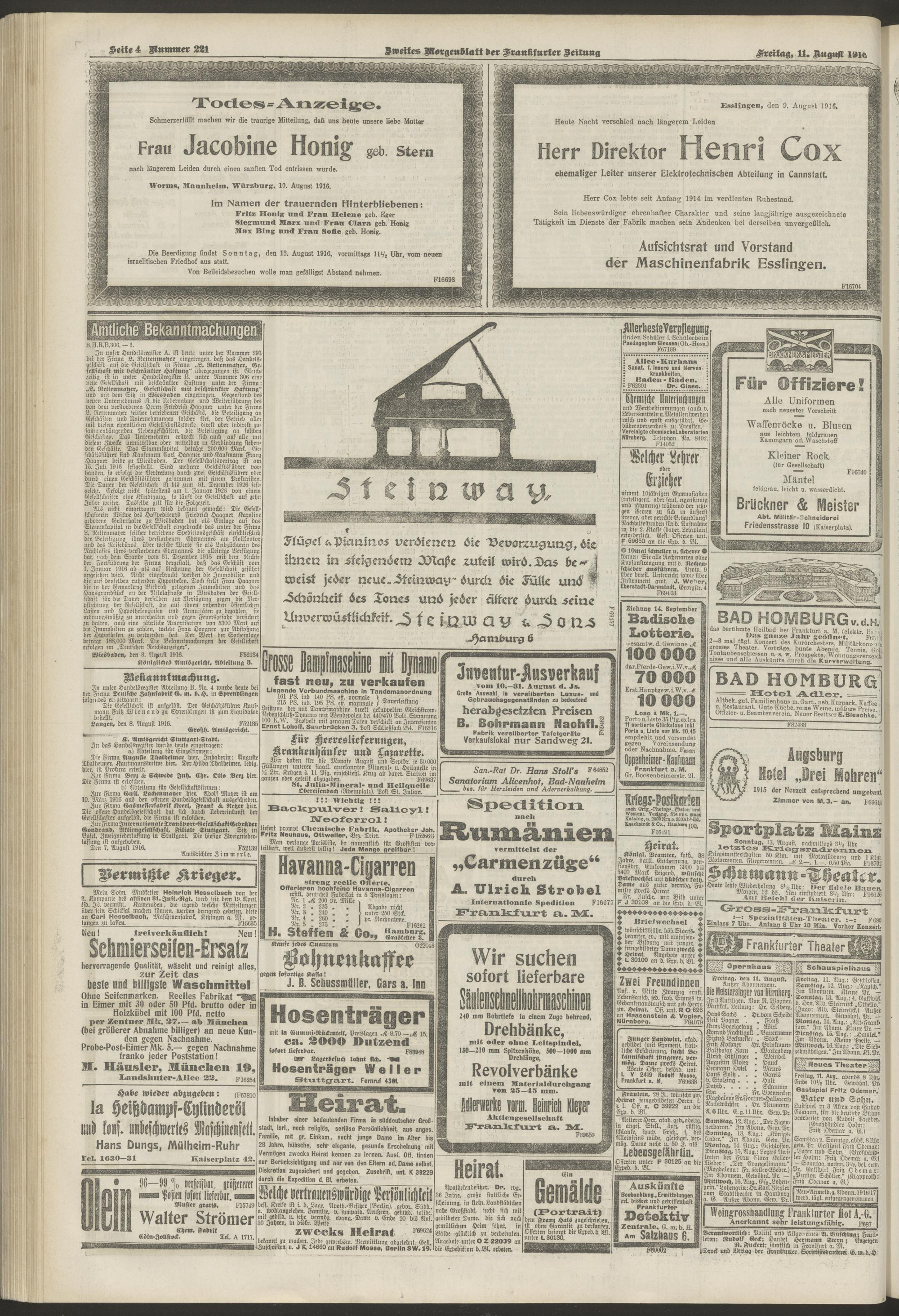 11.08.1916 = Nr. 221. Zweites Morgenblatt